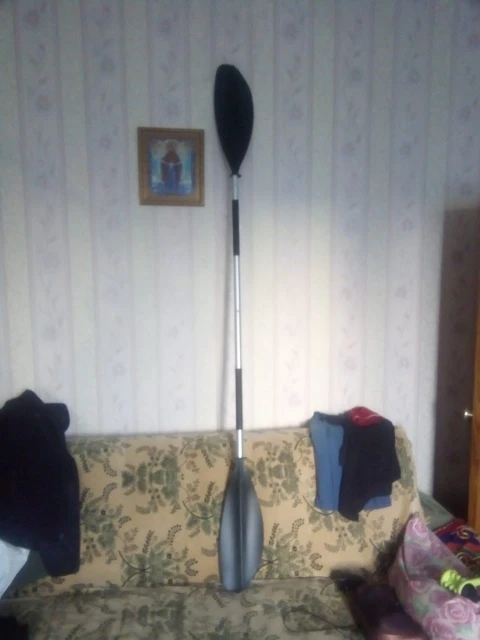 пришло за 11 дней до Самары. Взял в качестве запасного и дочке для походов на каяке. Все детали хорошо подогнаны, есть небольшой люфт, но не критично, не для серьезной гонки. огромное преимущество вес всего 840 г.!!! внутри стоят пластиковые заглушки, надеюсь воду не пропустят. на фото сравнение с лопастью тайменевского весла.