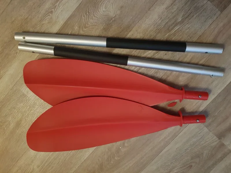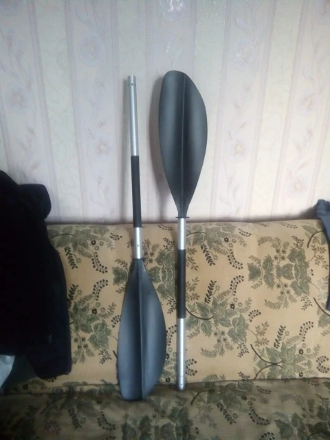 Весла получены достаточно быстро. Замечания при внешнем осмотре: - в месте соединения труб шафта расположение фиксирующего отверстия не совпадает с расположением фиксатора на ответной трубе миллиметров на 25 - надо пересверливать. - расстояние до отверстий под установку регулируемой лопасти короче расстояния до фиксатора на лопасти мм на 12 - надо пересверливать. Подобные весла в России стоят в районе 1300 руб. - заказывал " на посмотреть" - посмотрел...