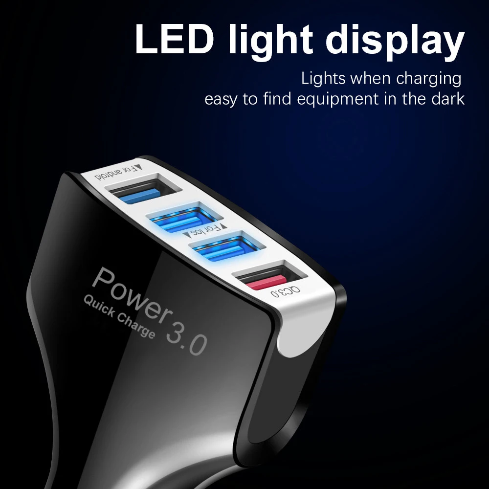 Автомобильное зарядное устройство с 4 портами 3,0, автомобильное за...