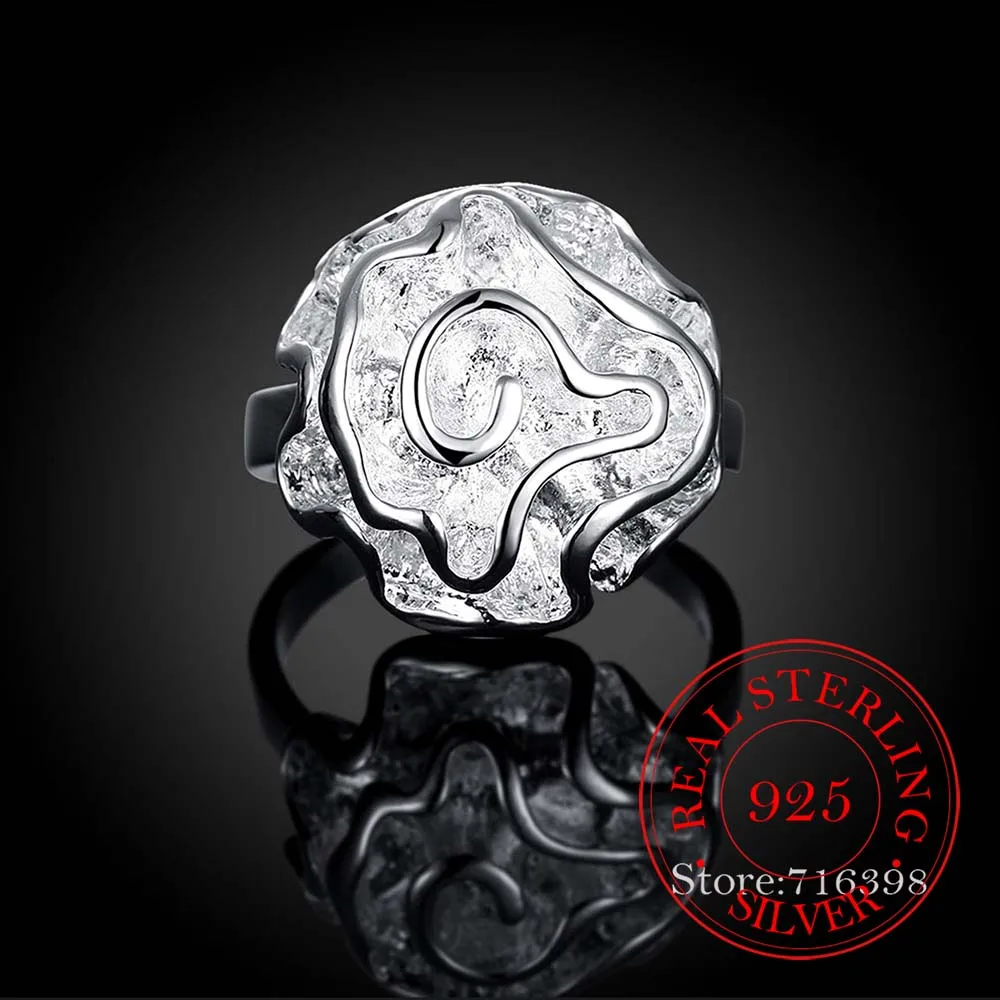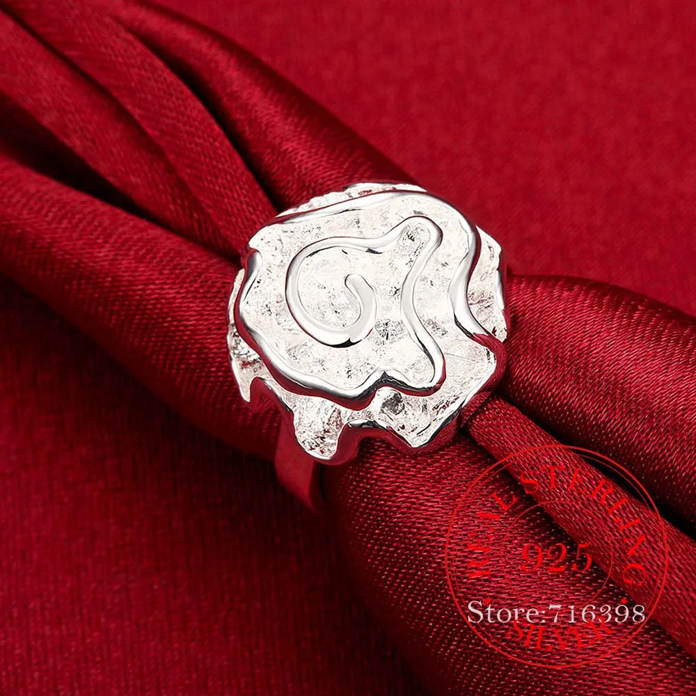 Женское и мужское винтажное серебряное кольцо с цветком розы, украшение из стерлингового серебра 100% пробы, размеры 6, 7, 8, 9, 10