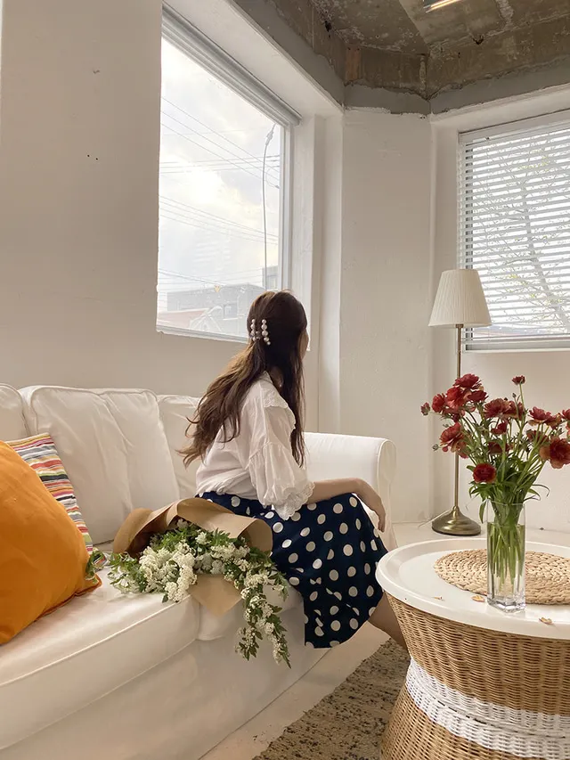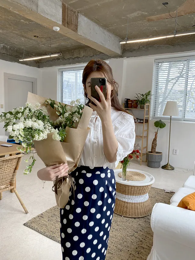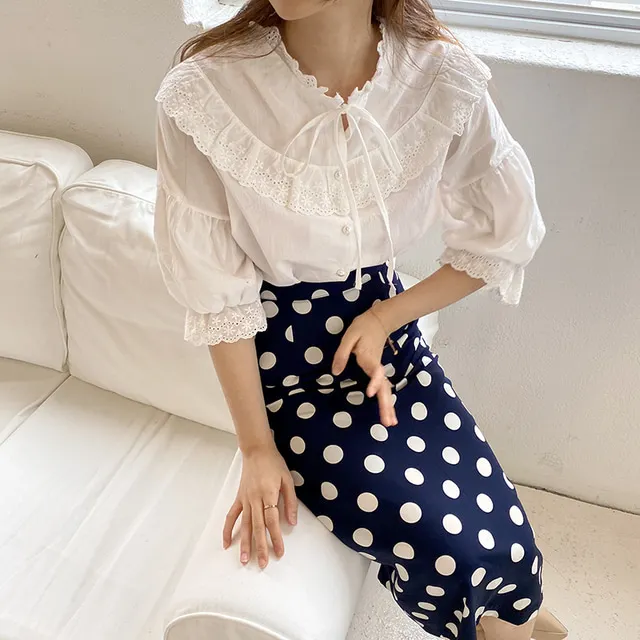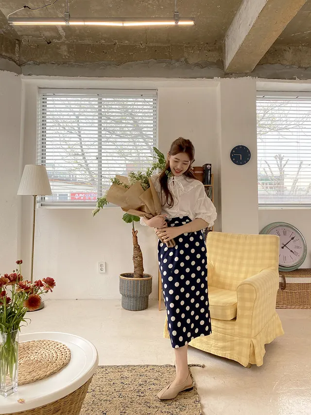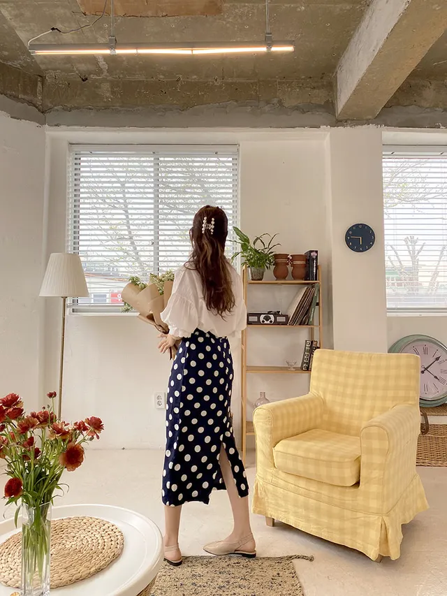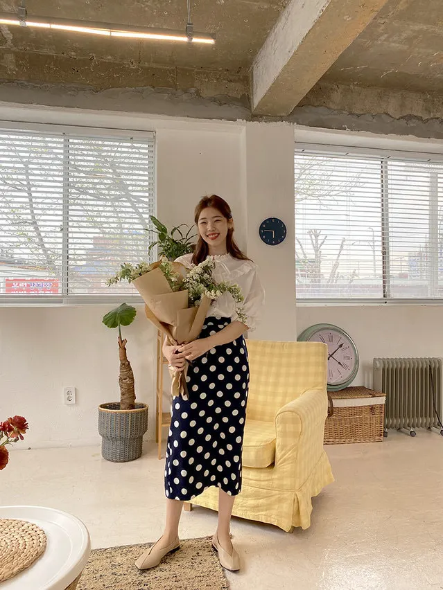 Женская длинная юбка-карандаш с запахом, летняя синяя юбка в горошек с высокой талией и разрезом на подоле