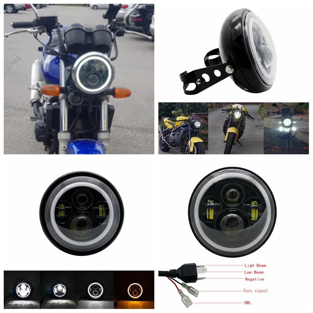 7-дюймовые круглые светодиодный ные фары Halo Кольцо ангельские глазки мотоциклетные фары 7 дюймов корпус фары мотоцикла монтажные кронштейны
