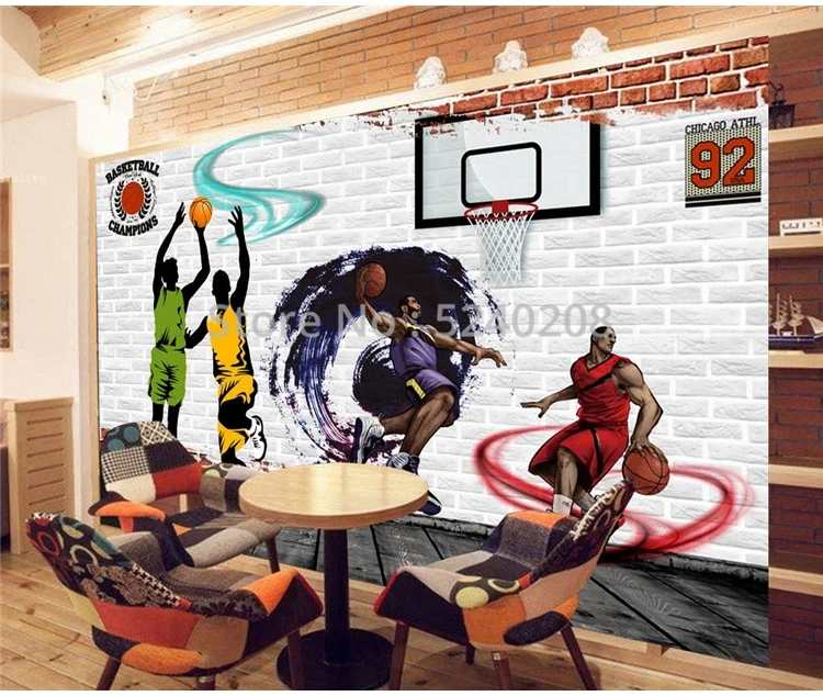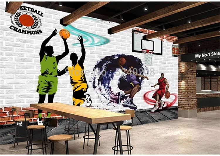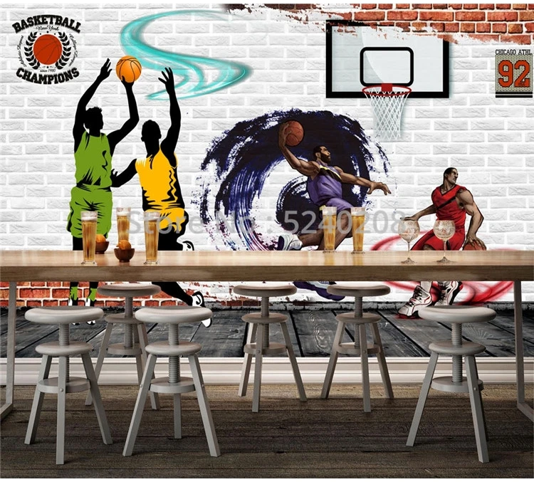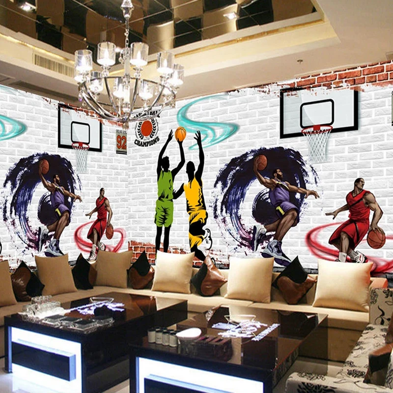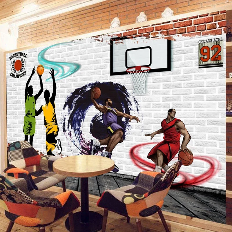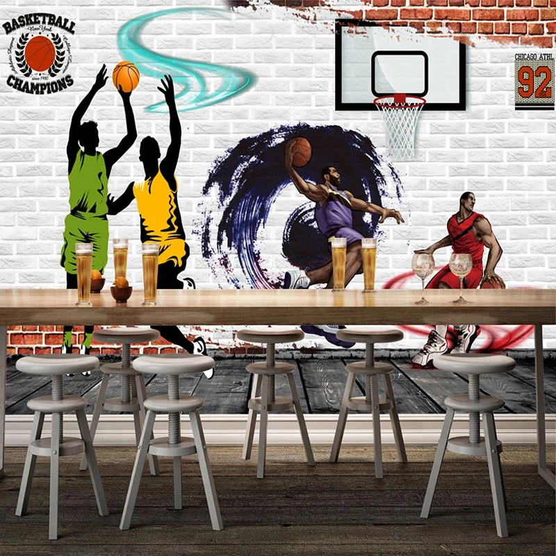 Пользовательские самоклеющиеся обои 3D уличная баскетбольная игра кирпичная Настенная роспись ресторан кафе граффити настенная живопись 3D Настенная Наклейка