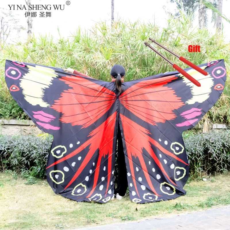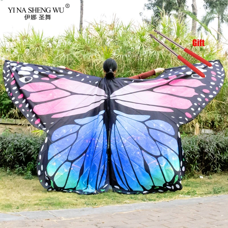 Танец живота Исиды крылья бабочки радужные красочные крылья с палочками для взрослых женщин аксессуары для танцев живота костюмы для девочек Bellydance