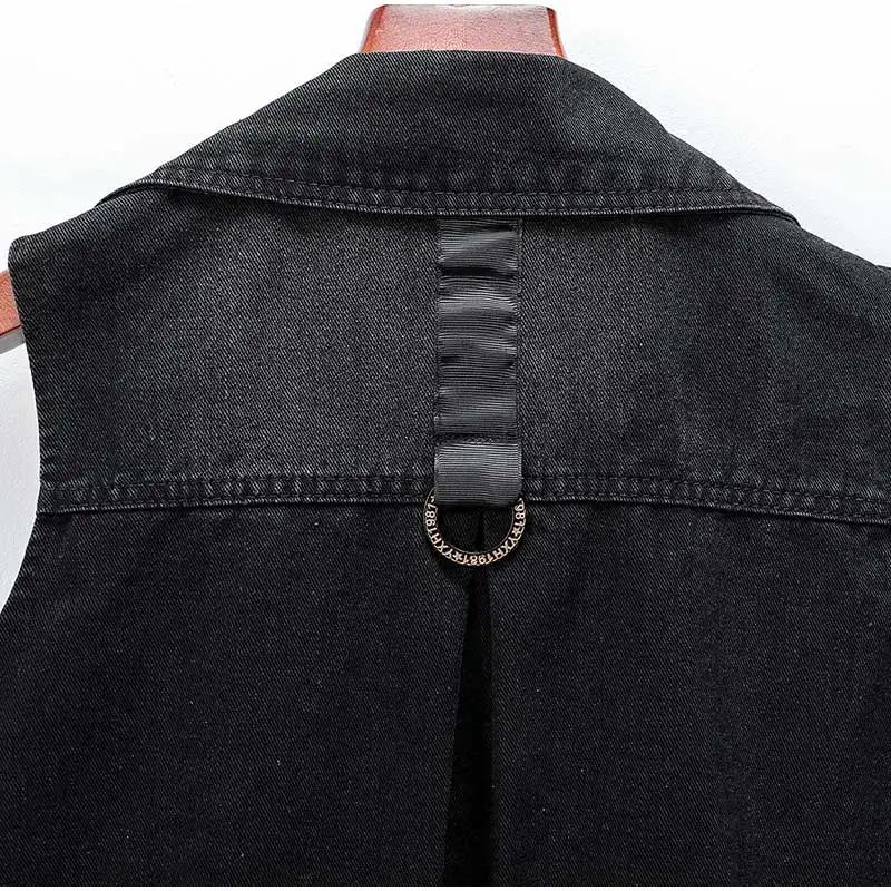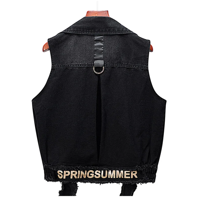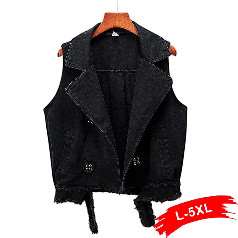 Женская Короткая Джинсовая безрукавка, двубортный черный жилет большого размера 4XL, 5XL в Корейском стиле, короткая джинсовая куртка-бомбер без рукавов на лето