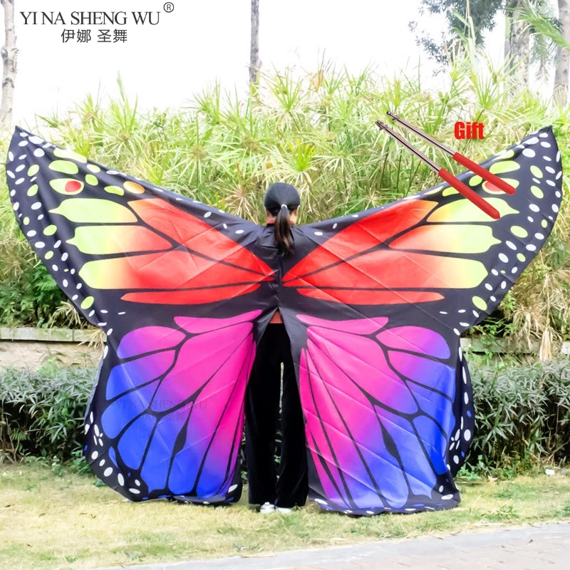 Крылья с палочками для танца живота Isis, Бабочка, Радужное цветное крыло, женские аксессуары для танца живота, крылья монарха, костюмы