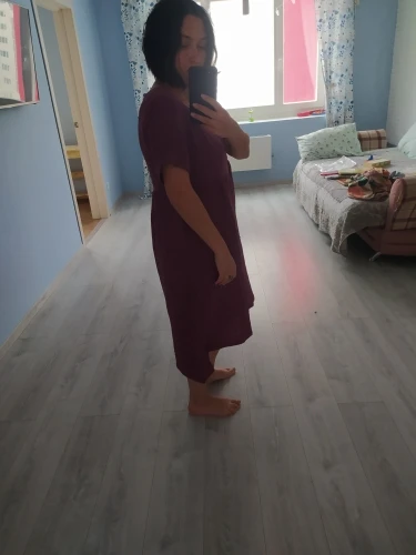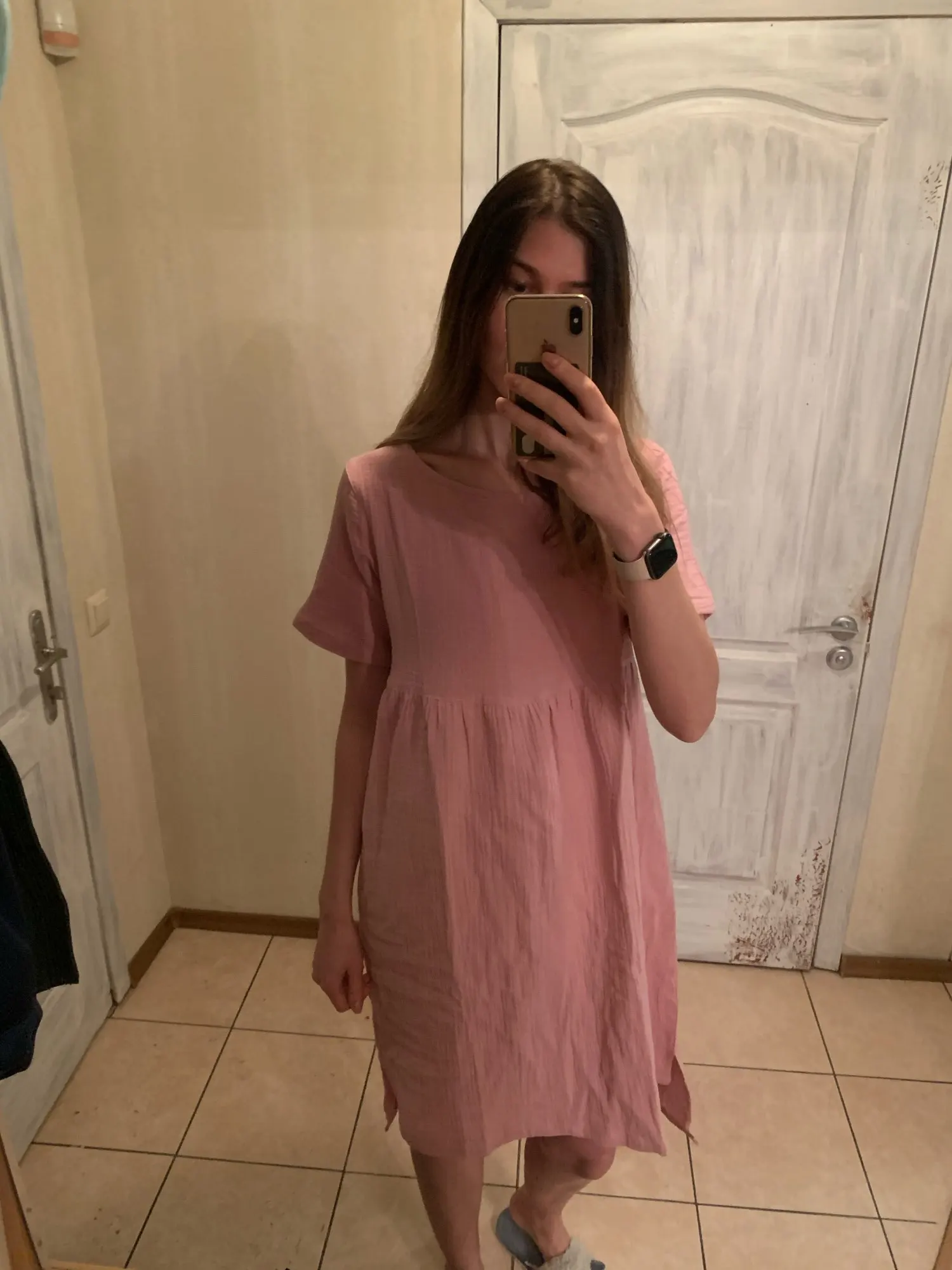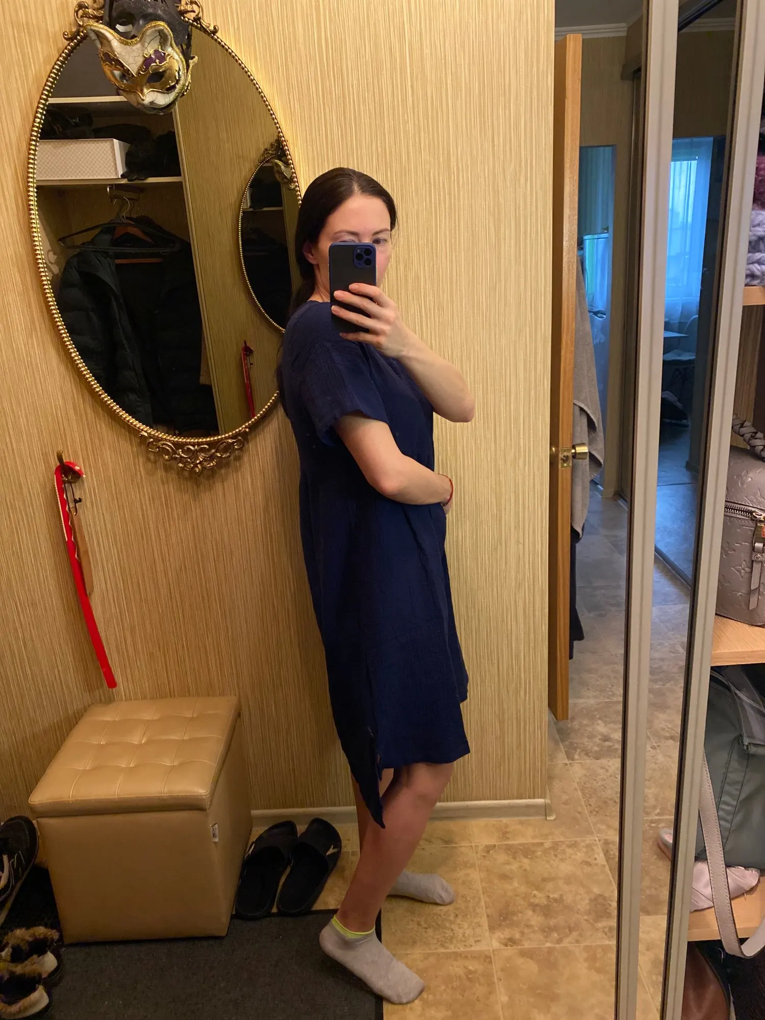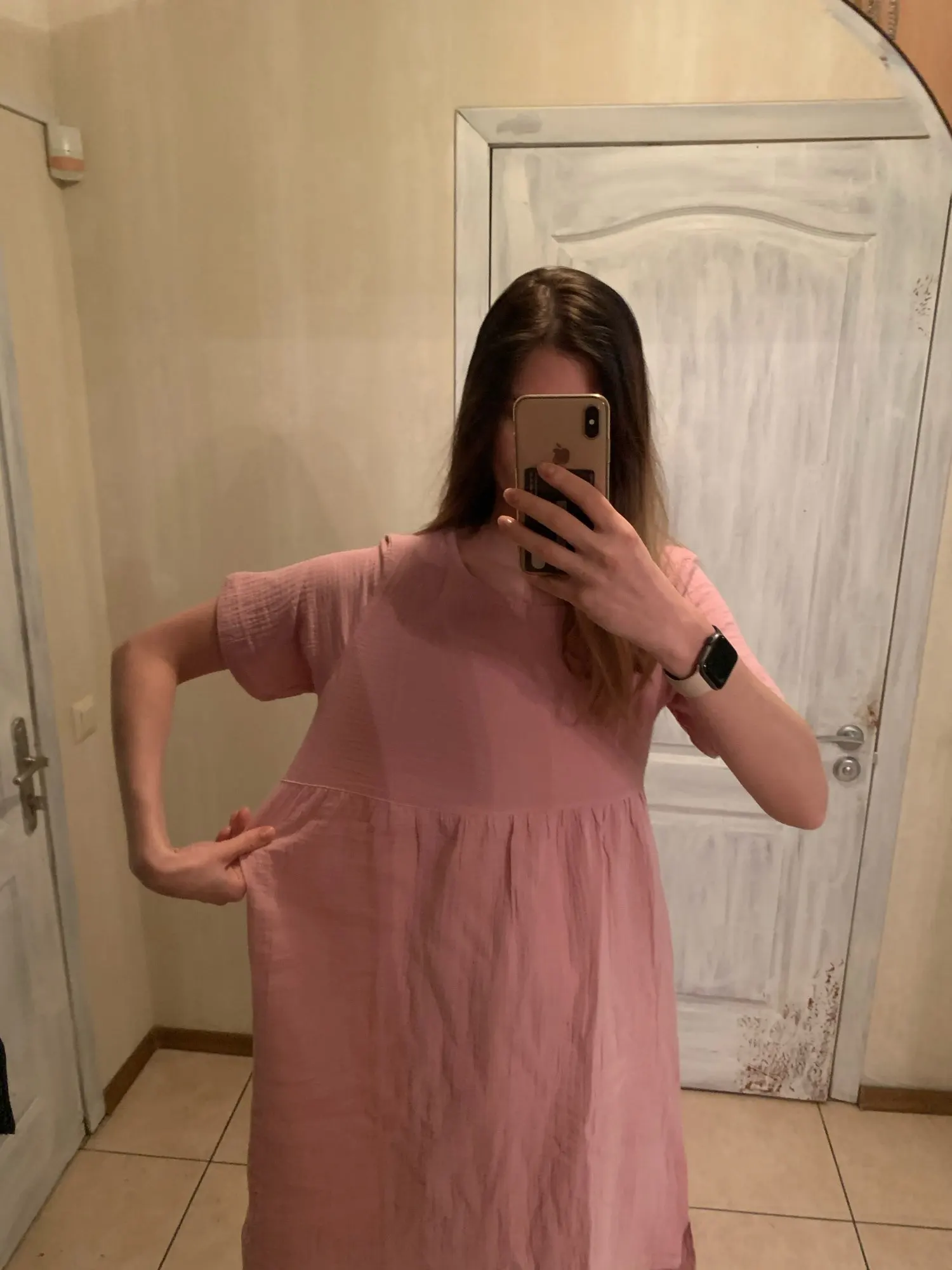 Очень хорошее платье, не маленькое, ткань натуральная, не просвечивает, размер на 170 рост вес 67 норм, даже великовато, ниже колена немного, сзади чуть длиннее. Кстати, пойдёт беременным
