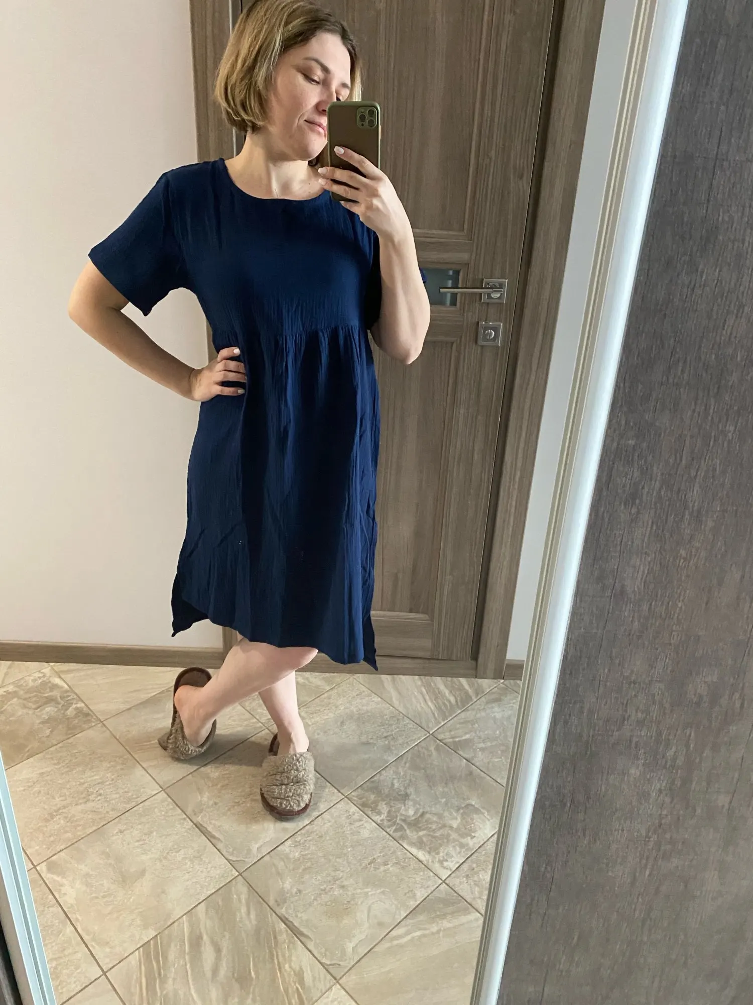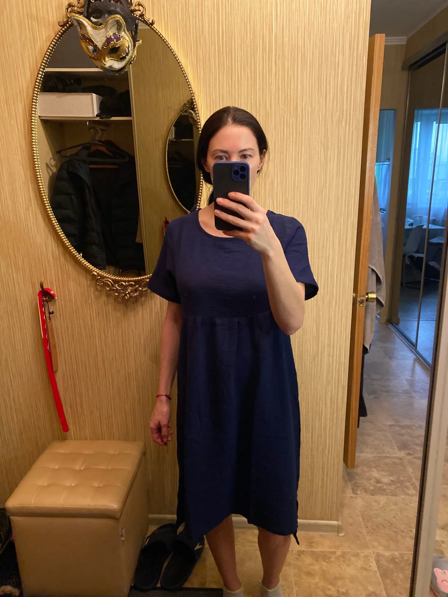 Хорошее летнее домашнее платье. Абсолютно соответствует фото продавца. Приятная ткань, свободный крой. На рост 162 параметры 83-64-90 село очень хорошо. Сшито аккуратно. Советую, продавцу спасибо.