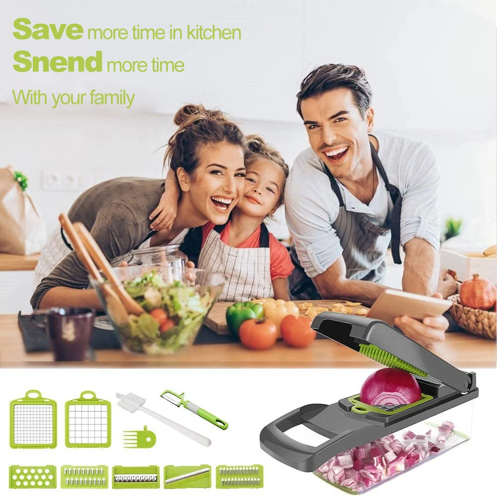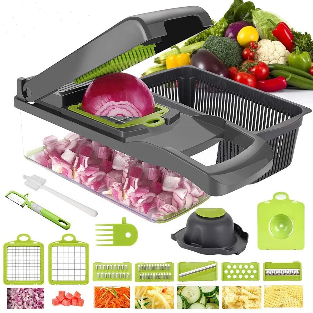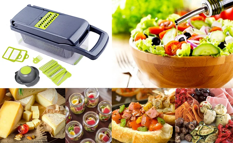 С помощью этого кухонного набора для резки вы можете сэкономить 70% времени, попрощайтесь с водянистыми глазами, когда нарезаете лук; И поможет вам готовить еду более элегантно.