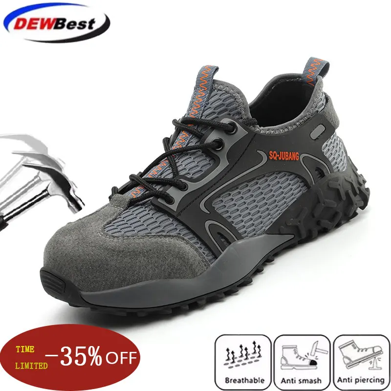 Мужские ботинки со стальным носком, дышащие, с защитой от проколов, для лета