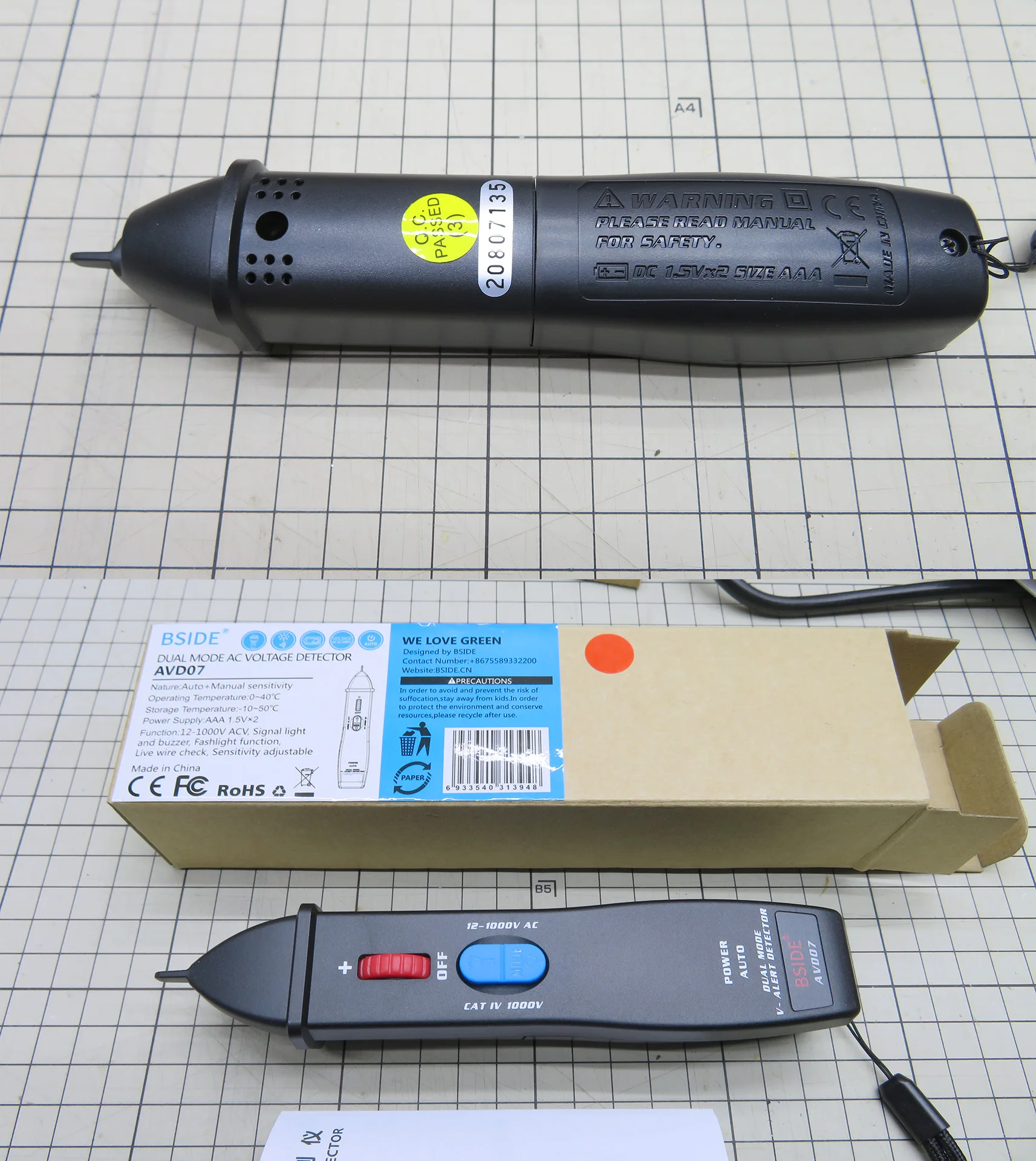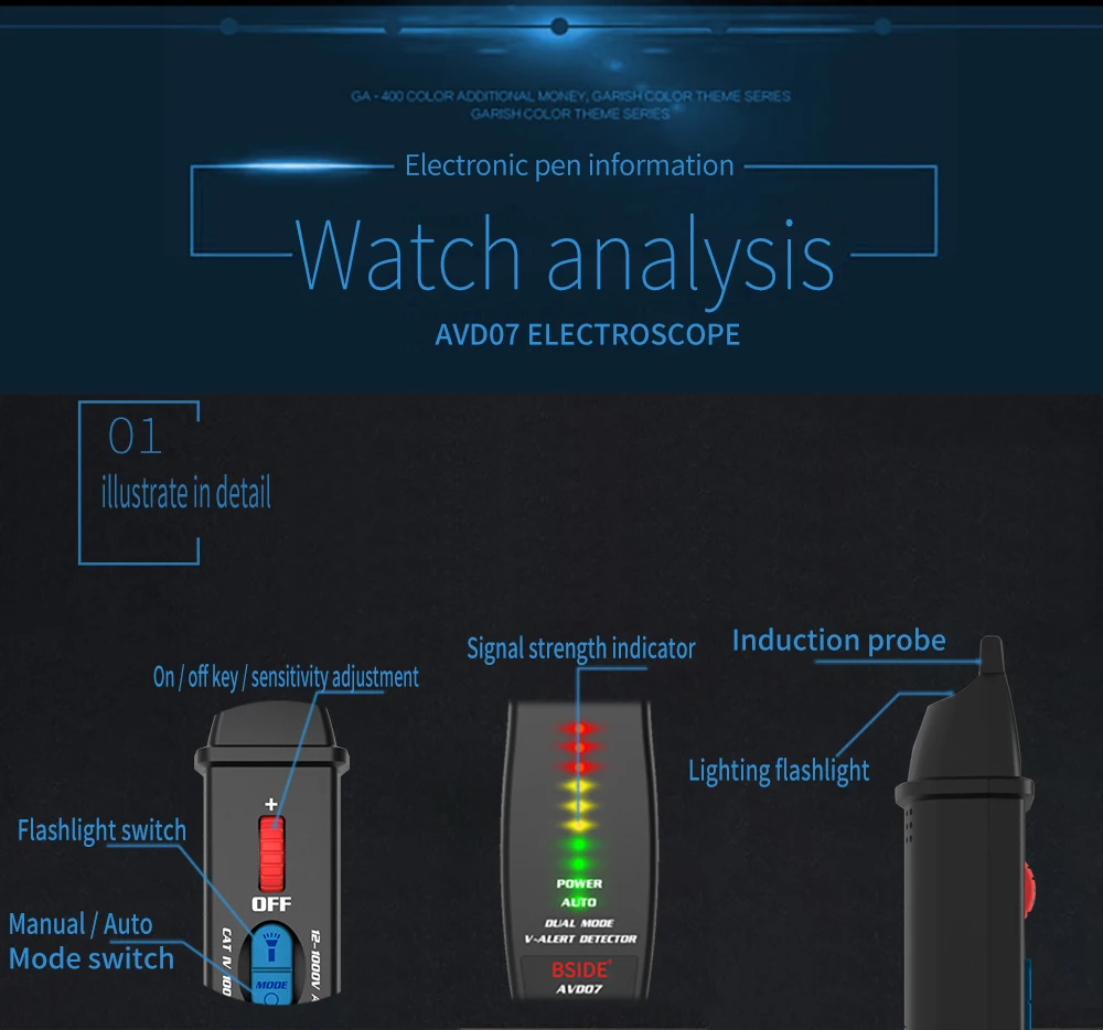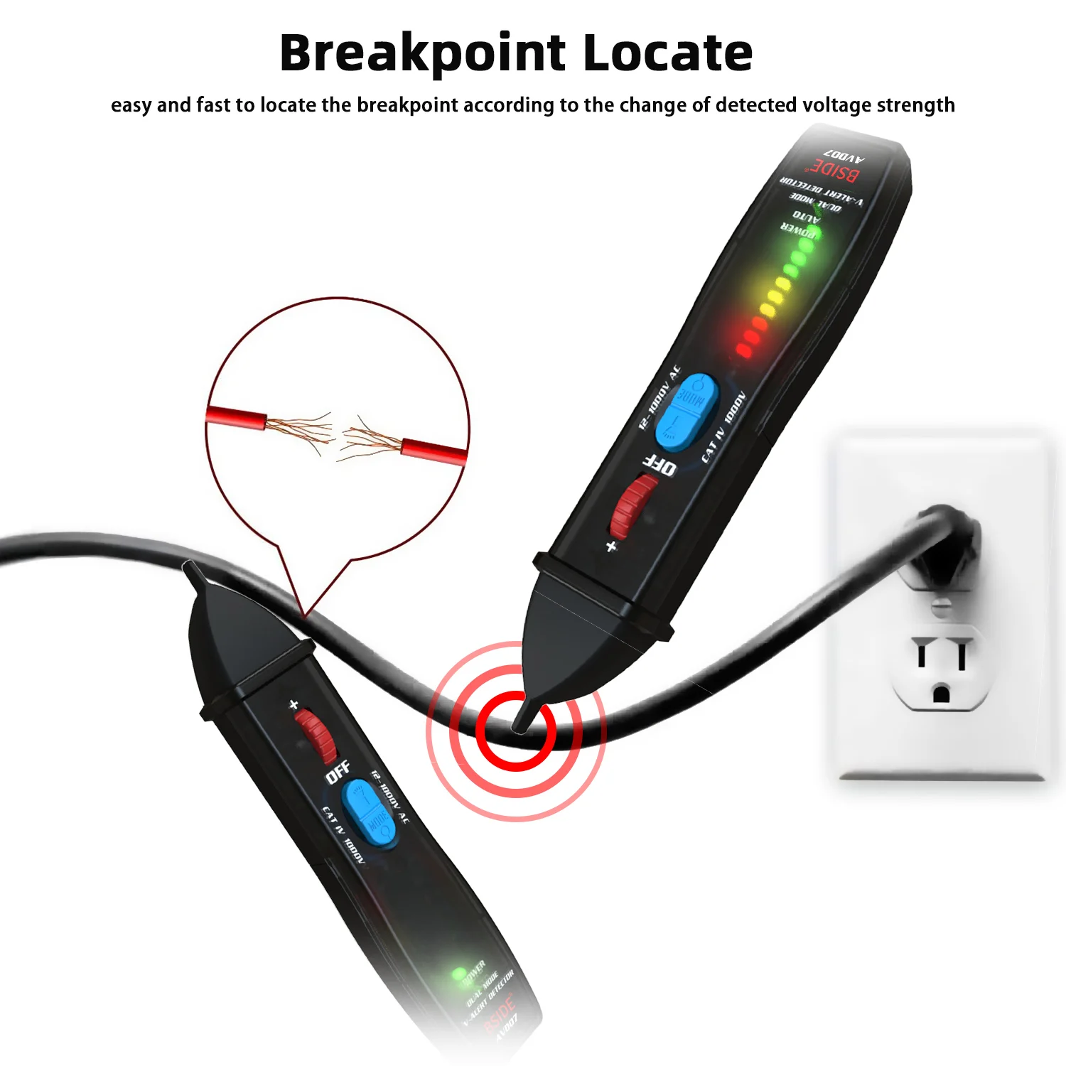 Индикатор бесконтактного детектора напряжения BSIDE AVD07, умный Электрический тестер в режиме реального временинейтральный провод, проверка целостности цепи NCV