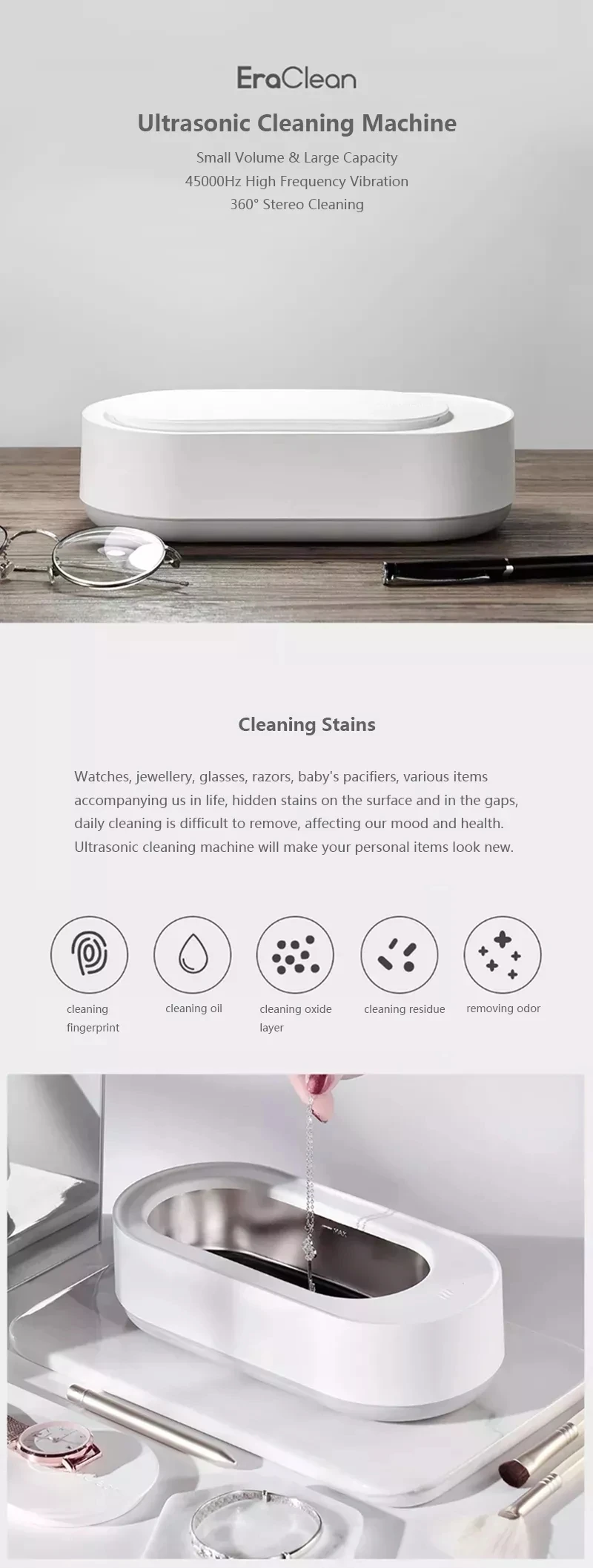 Ультразвуковая Очистительная Машина Xiaomi EraClean 45000 Гц, высокочастотный Вибрационный очиститель для мытья ювелирных изделий, очков, часов