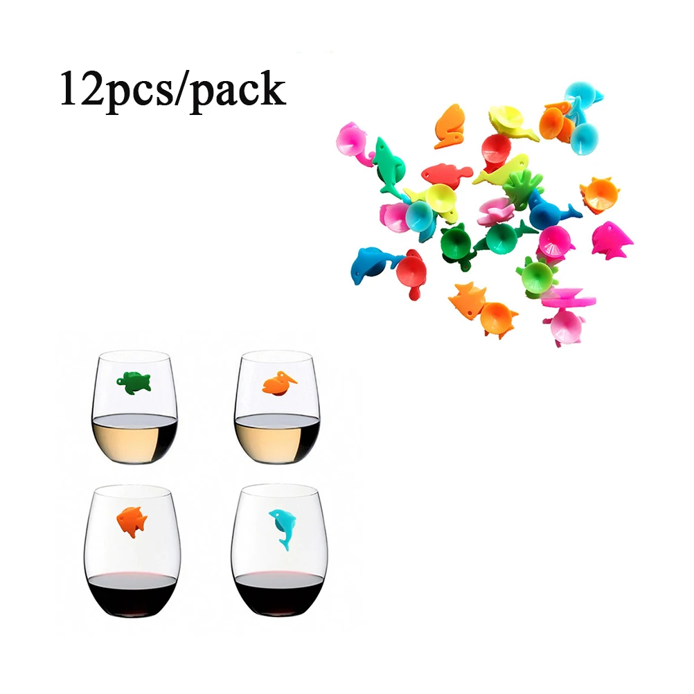 12 шт. силиконовый маркер на стакан для вина, морские животные, креативный стеклянный знак, идентификатор для стакана питьевой чашки вечерние знак для вечеринки, признак, разные цвета