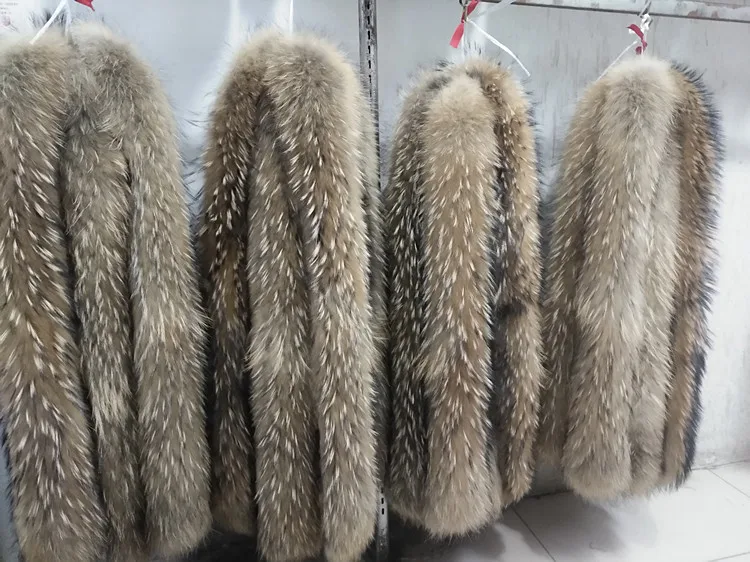 100% натуральный мех енота шарф Зимний Капюшон мех декоративная шаль Многоцветный натуральный мех шарф зимнее пальто меховой воротник