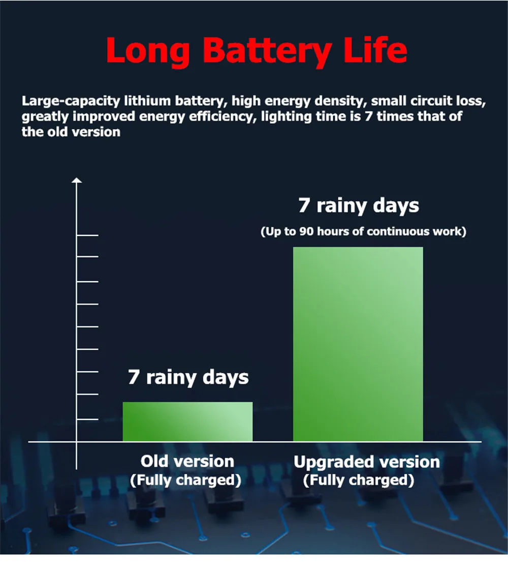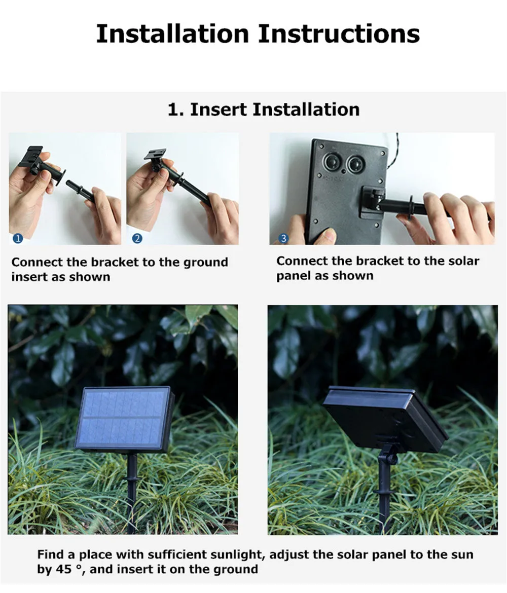 Основная особенность: 1. Круглогодичное электричество 0 °, класс водонепроницаемости IP65, защита от дождя, солнца и молнии, защита от старения, подходит для использования на открытом воздухе. 2. Солнечная панель из поликристаллического кремния, коэффициент конверсии до 93%, большая емкость, зарядка в 7 раз быстрее, чем у старой модели. При полном солнечном свете его можно заряжать в течение 6 часов и используется для 12-36 часов. 3. Литий-ионный аккумулятор 18650 3,7 в/1200 мАч, большой емкости аккумулятора, может длиться 7 дождливых дней. 4. С пультом дистанционного управления, с функцией переключения режима освещения, регулировки яркости и настройки времени. Расстояние дистанционного управления составляет 5 метров, что удобно для дистанционного управления. 5. Предусмотрено два способа установки: можно установить на стену или подключить к земле, простая установка. 6. Лампы с ярсветильник Том, без затухания светильник Высокая цветопередача, мягкий естественный светильник, цветопередача более реальная, более высокая яркость, чем у старой модели. Пульт дистанционного управления или кнопка на солнечной панели для изменения света 8 режимов мигания 7. Подходит для добавления праздничной атмосферы, украшения магазина, парка, свадьбы, сада, двора, отеля, вечерние, Рождества, спальни и т. д. Особенности: Название продукта: усовершенствованная светодиодная гирлянда на солнечной батарее Солнечная панель: солнечная панель из поликремния, 5,5 В/мА Аккумулятор: 1 шт * 18650 литий-ионный аккумулятор 3,7 в/1200 мАч Светильник: 3-128 светодиодов, 5-256 светодиодов Цвет светильник: теплый белый Уровень водонепроницаемости: IP65 Время зарядки: 6 часов Время работы: 12-36 часов Вес: 3 м-0,51 кг, 5 м-0,6 кг Срок службы лампы: 2 года Рабочая температура: -10 ° c ~ + 50 ° c Размер упаковки: 20*10*10 см Материал: АБС Режим работы: Управление освещением + дистанционное управление + переключатель Расстояние дистанционного управления: 5 метров Режим освещения: 8 режимов: 1. Расческа, 2. В волнах, 3. Последовательный, 4. Slo-Glo, 5. Чеканка/вспышка, 6. Медленное выцветание, 7. Мерцание/вспышка, 8. Продолжайте. Детали упаковки продукта: 1 х Солнечная световая струна 1 х пульт дистанционного управления 1 х вставной заземляющий штекер 2 винта 1 х Руководство пользователя