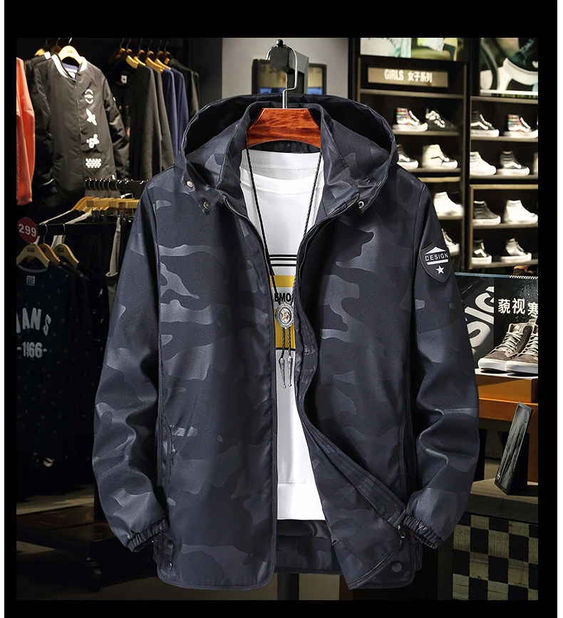 Мужская повседневная камуфляжная куртка с капюшоном, размера плюс 4...