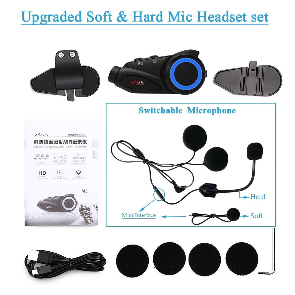 Водонепроницаемый Bluetooth WIFI DVR HD рециркулятор для группы 6 водителей Мотоцикл Интерком внутренняя телефонная связь мотоциклиста 1000 м Бесплатная доставка