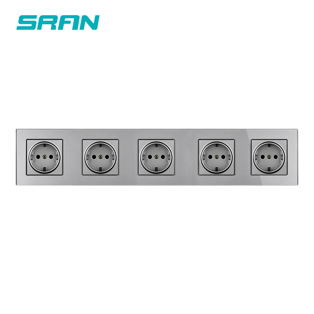 SRAN настенная прозрачная стеклянная панель, розетка с 5 рамами, европейский стандарт, 16 А, заземленная 430 мм * 86 мм, пять розеток