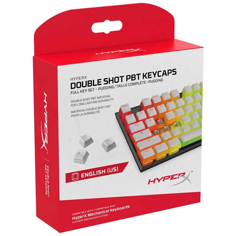 Полупрозрачные колпачки для ключей Kingston HyperX Double Shot PBT, 104 клавиш, совместимы с механической клавиатурой HyperX RGB