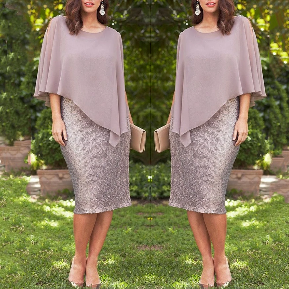Элегантное женское платье размера плюс, шифоновое платье с круглым вырезом, лоскутное Двухслойное миди-платье-карандаш, vestidos платье женское