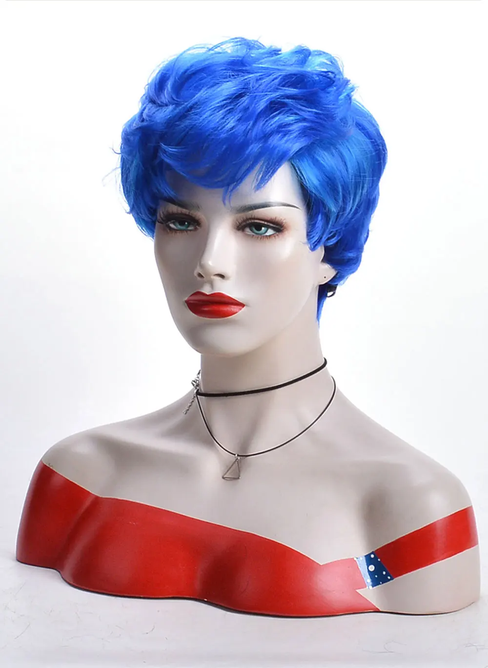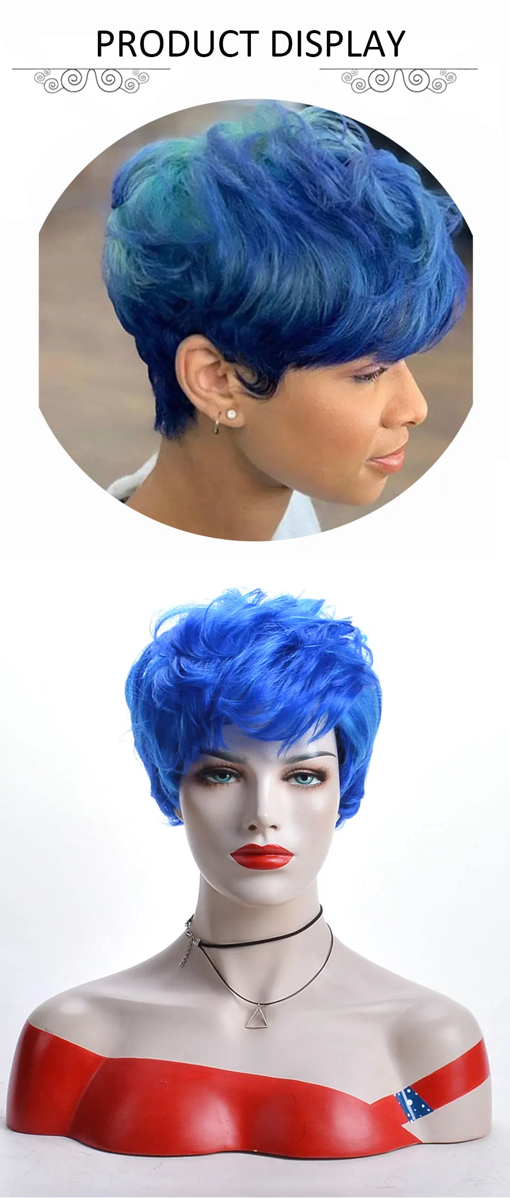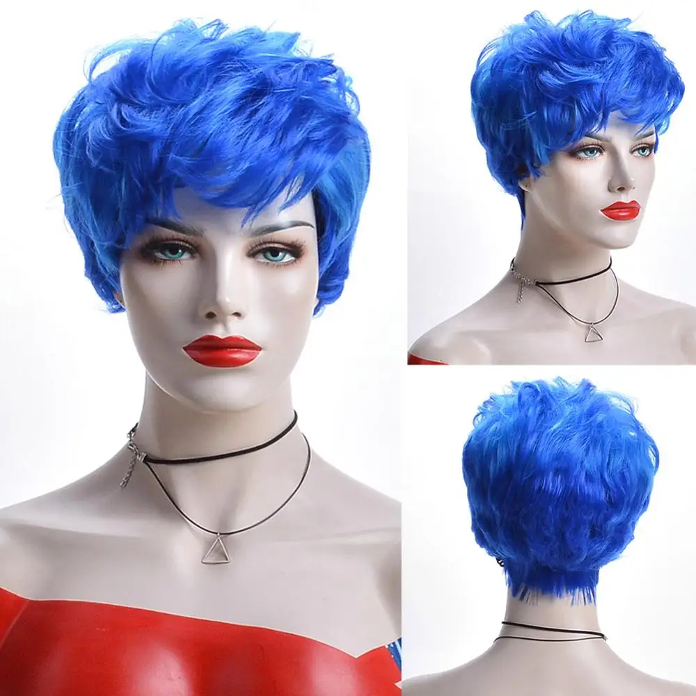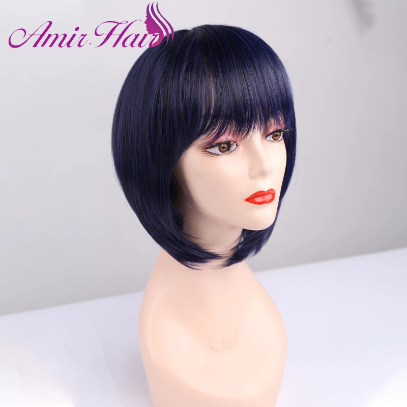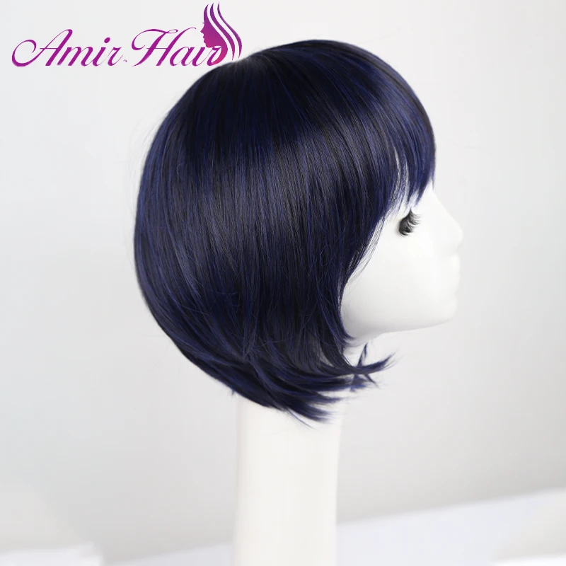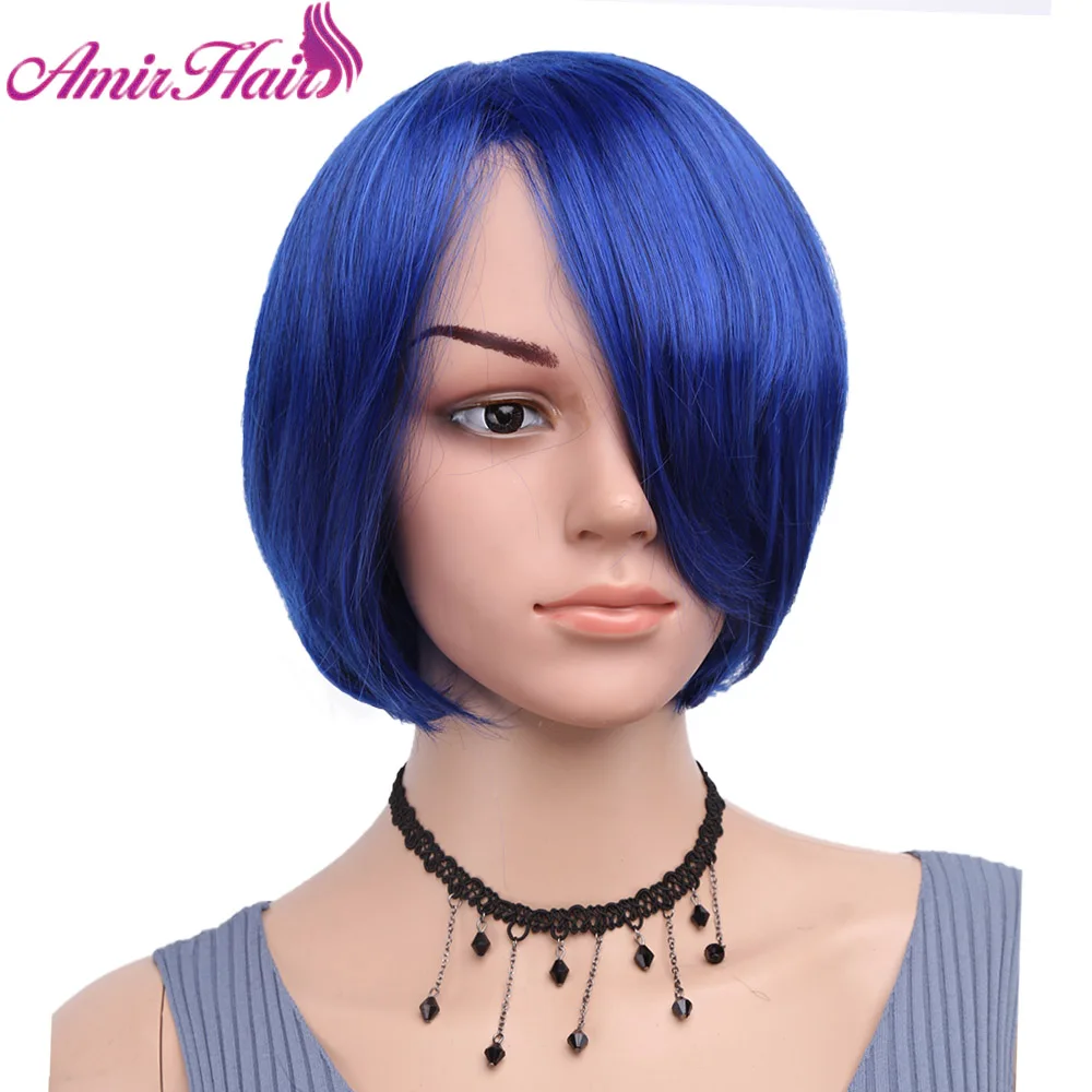 Амир, синие парики для женщин, стрижка Пикси, короткий прямой синтетический Боб, парик вечерние, косплей
