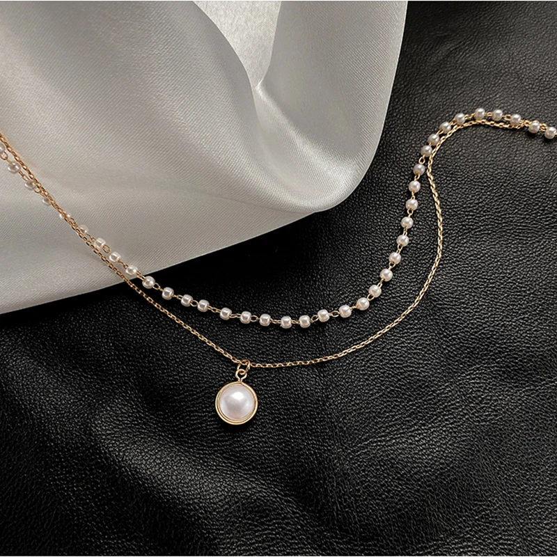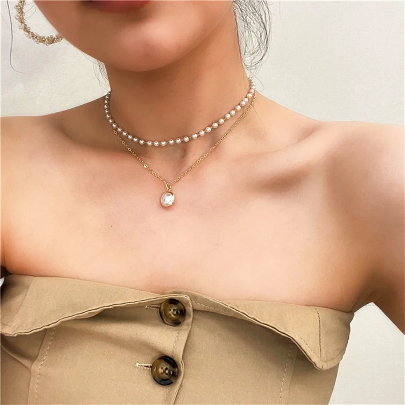 Модное жемчужное колье-чокер, женское милое Двухслойное колье с серебряной Золотой подвеской, колье, ювелирные изделия для женщин 2020