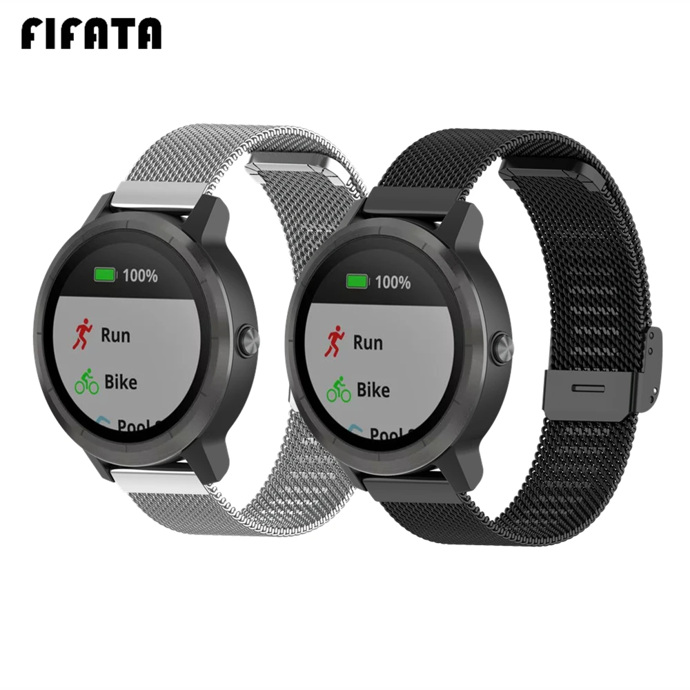 Ремешок для часов FIFATA 20 мм 22 мм для Garmin Vivoactive 3 4 Forerunner 245 245 м 645 из нержавеющей стали, металлический браслет