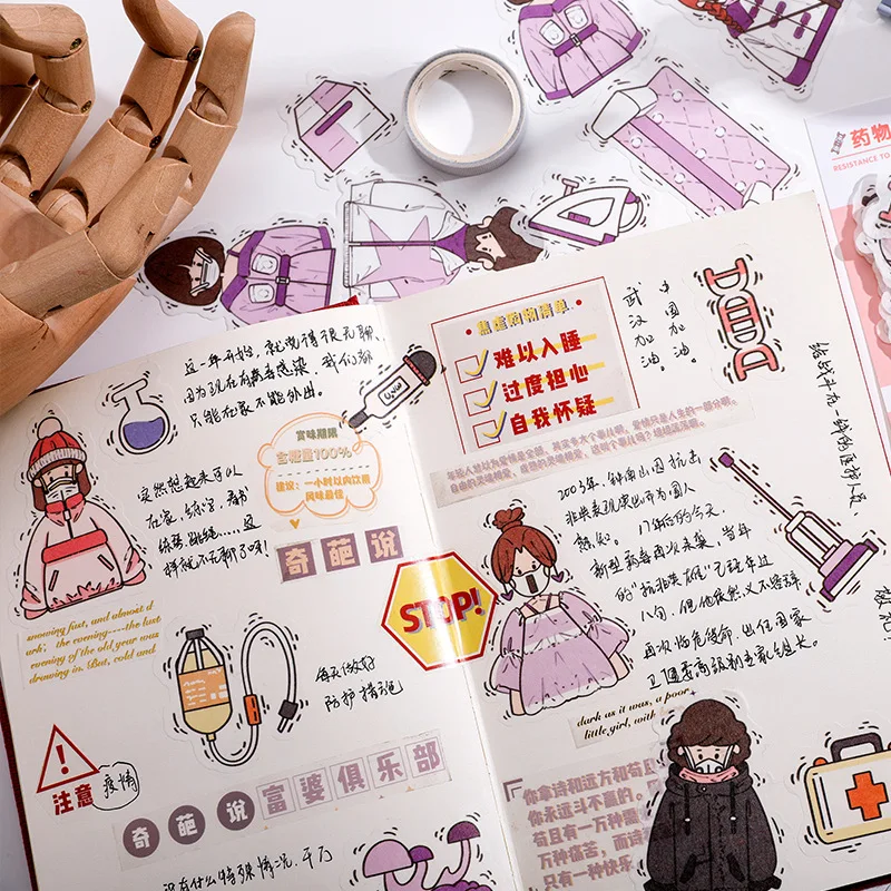 : Mohamm для выведения токсинов, 40 шт сопротивление эпидемии серии декоративные Стикеры книги самодельные отметки Бумага Стикеры хлопья стационарный аксессуары молни