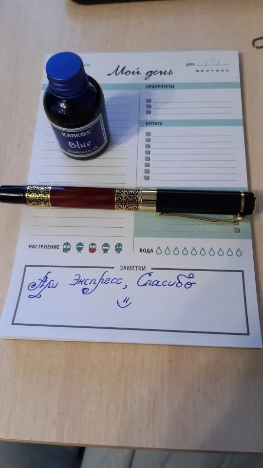 чудесный товар. Заправила в перо, пишет великолепно, быстро высыхают и не мажут, что для меня очень важно, так как я левша. Перо так же заказывала на али экспресс, в диком восторге от него, пишет мягко, надавливать на перо совсем не нужно, чернила идут легко. Заказывайте, не пожалеете.