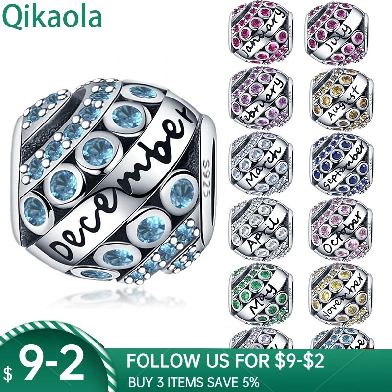 100% Настоящее 925 пробы серебро 12 стиль камень по месяцу рождения подходит оригинальный Pandora браслет и браслет для женщин день рождения модные ювелирные изделия подарок