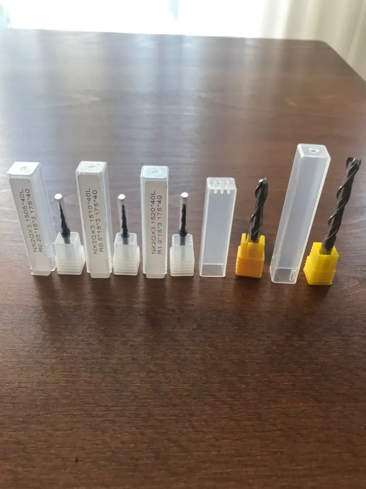 Приехало в Самару за две недели. Заточено очень не очень. За эти, пусть и не большие деньги хотелось большего. На фото: 1.Концевая часть не доточена -ф реза не будет нормально заходить в твёрдые материалы, 2.Самые вершинки сколоты, при транспортировке они бились о стенки пенала, т.к. сэкономили на поролончике.