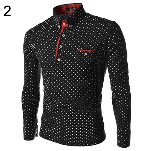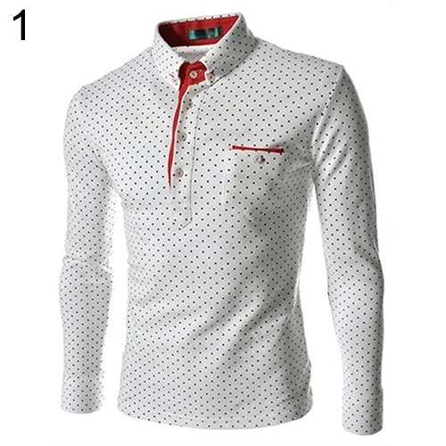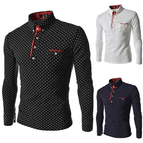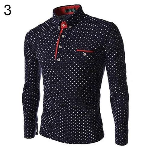 Мужская приталенная рубашка в горошек с длинными рукавами в английском стиле