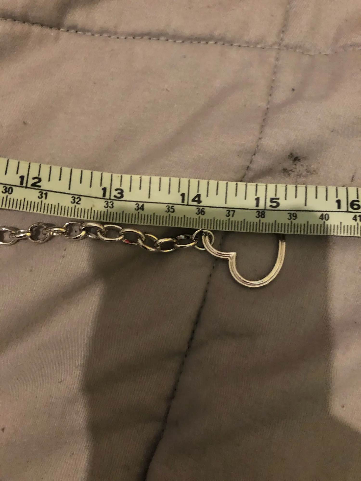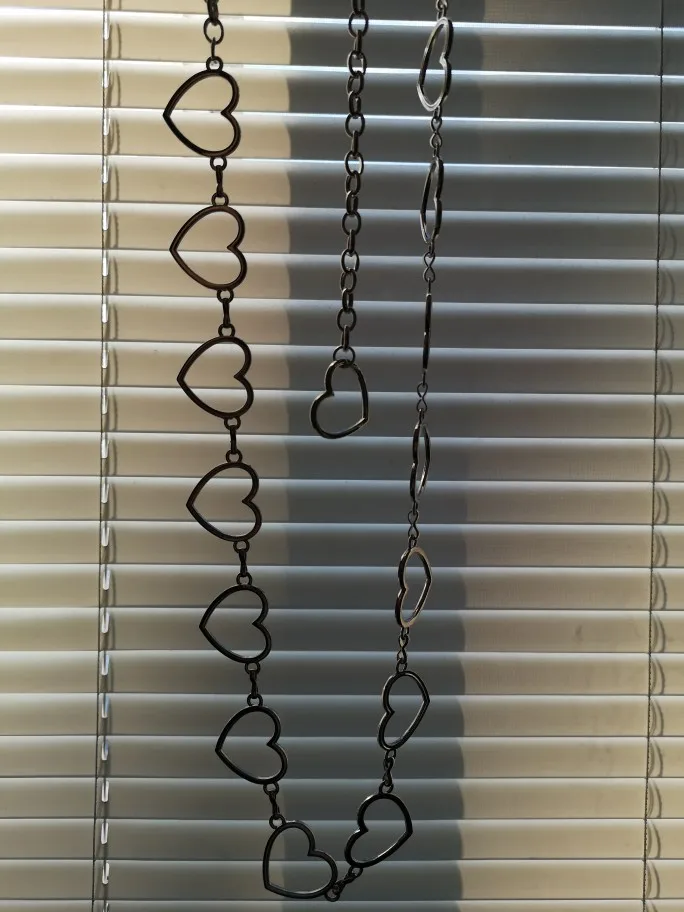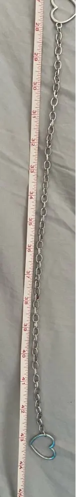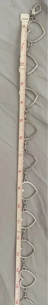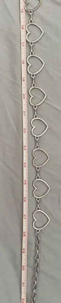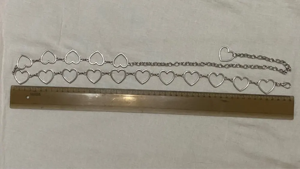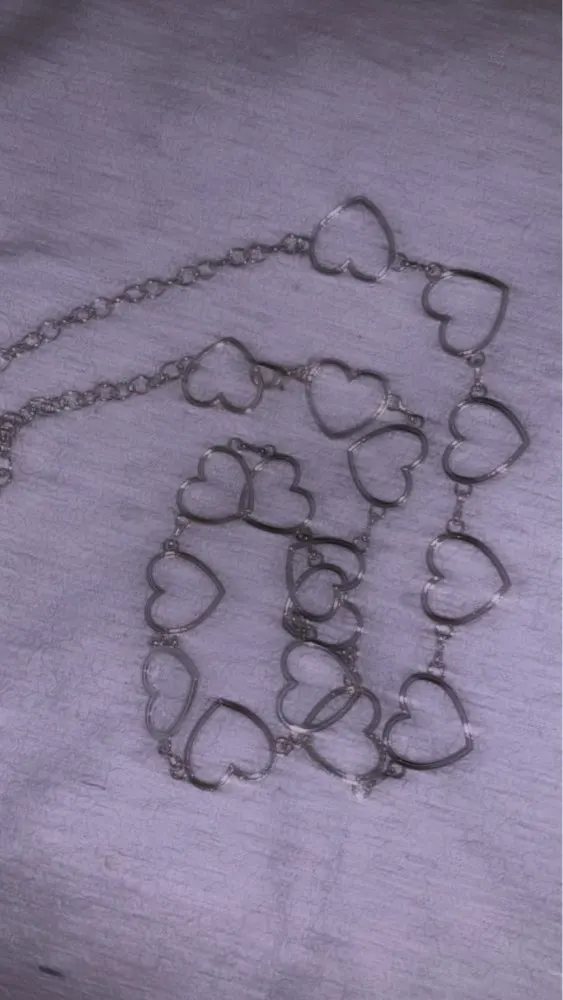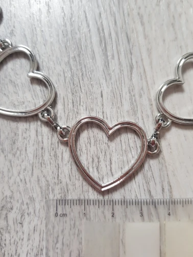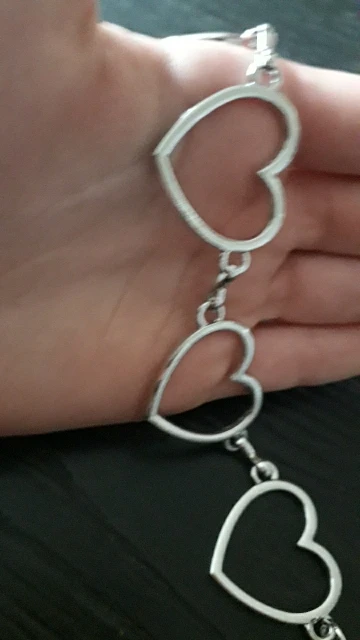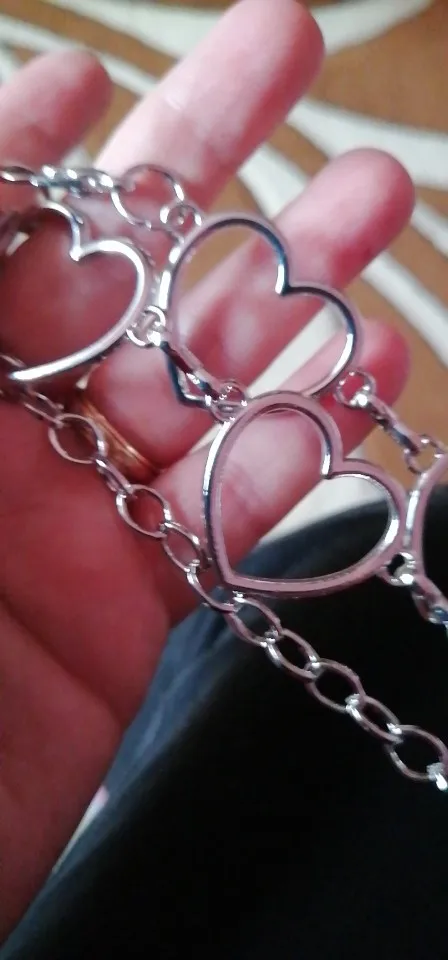 Очень доволен этим товаром. Длина очень длинная, поэтому для меня мне пришлось сократить ее с помощью плоскогубцев, но длина хорошая, так как это означает, что она подойдет многим людям. У сердец есть две стороны, Гладкая сторона и внутренняя сторона, где есть зазор в середине, но все они сочетаются гладко с одной стороны, так что это совершенно хорошо. Он выдает странный металлический запах, который беспокоит меня, что золото исчезнет с использованием, но время покажет. На данный момент мне нравится этот ремень, и я рад, что заказал его.