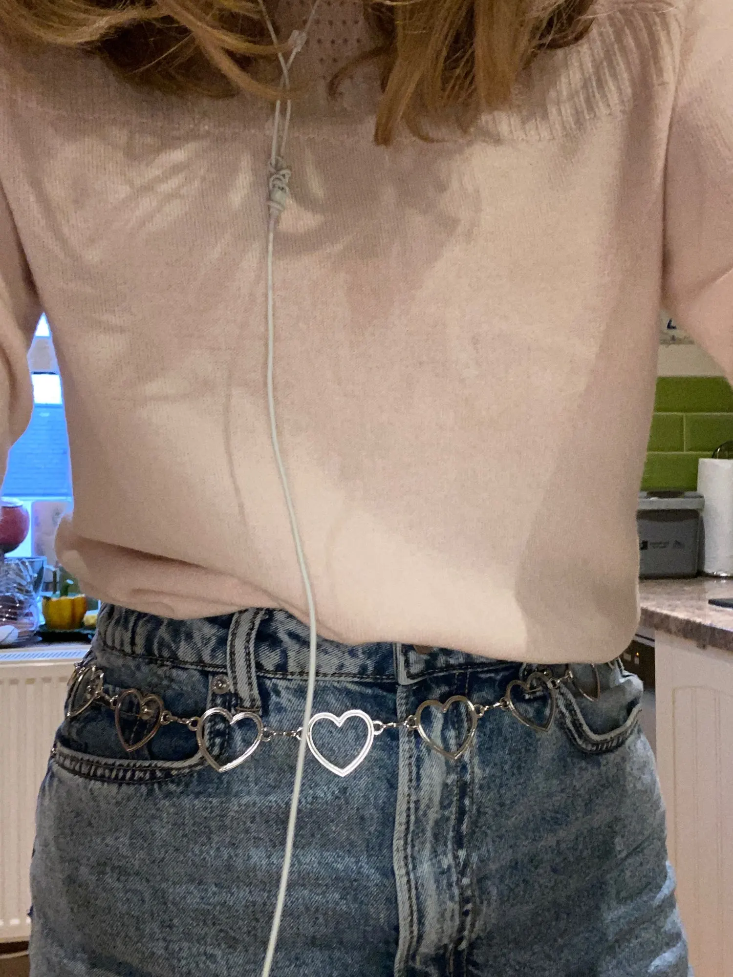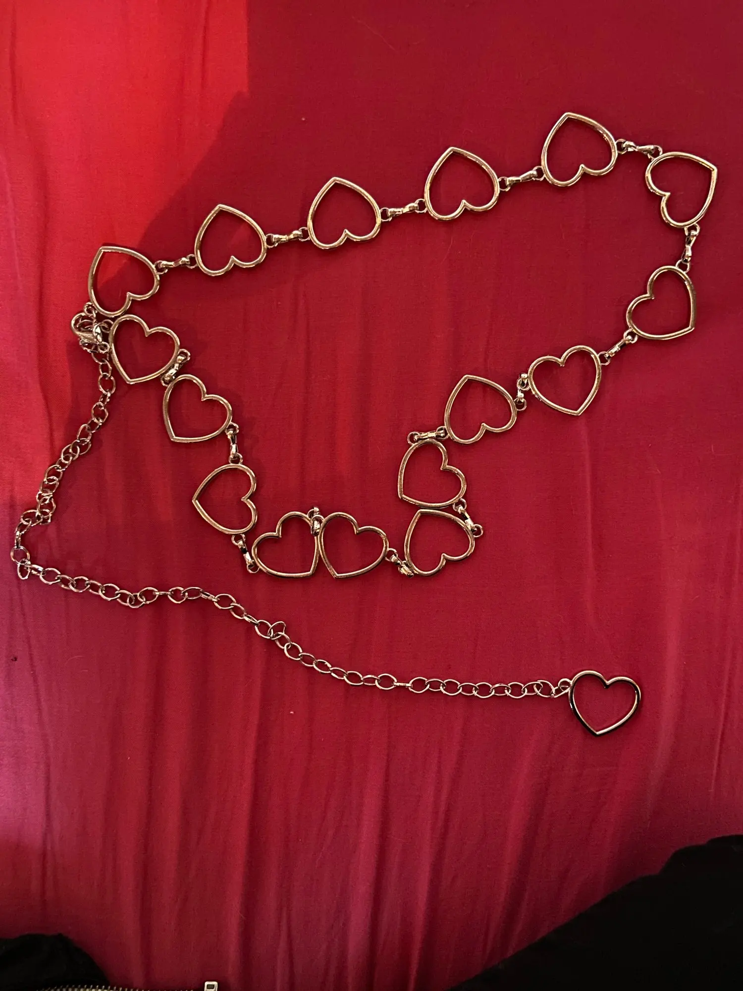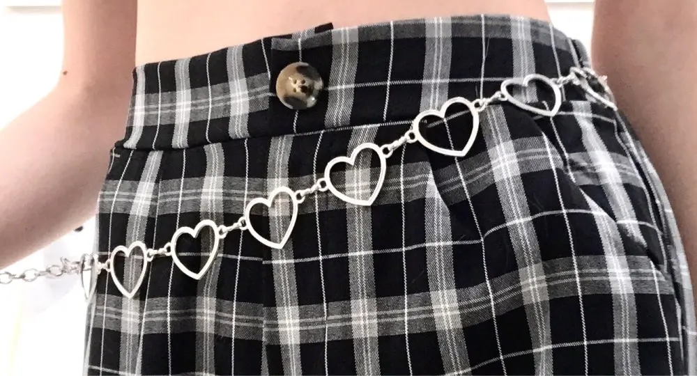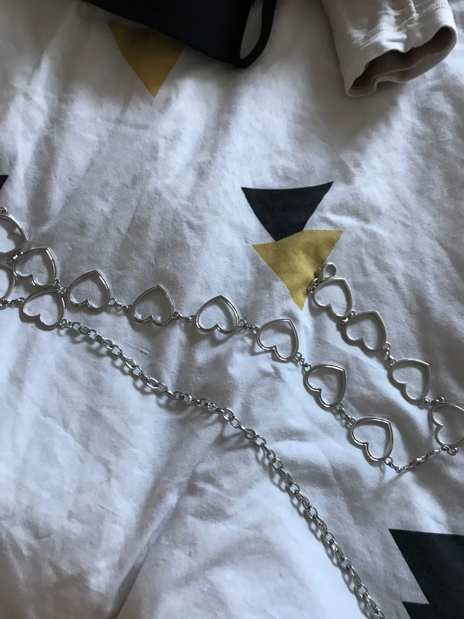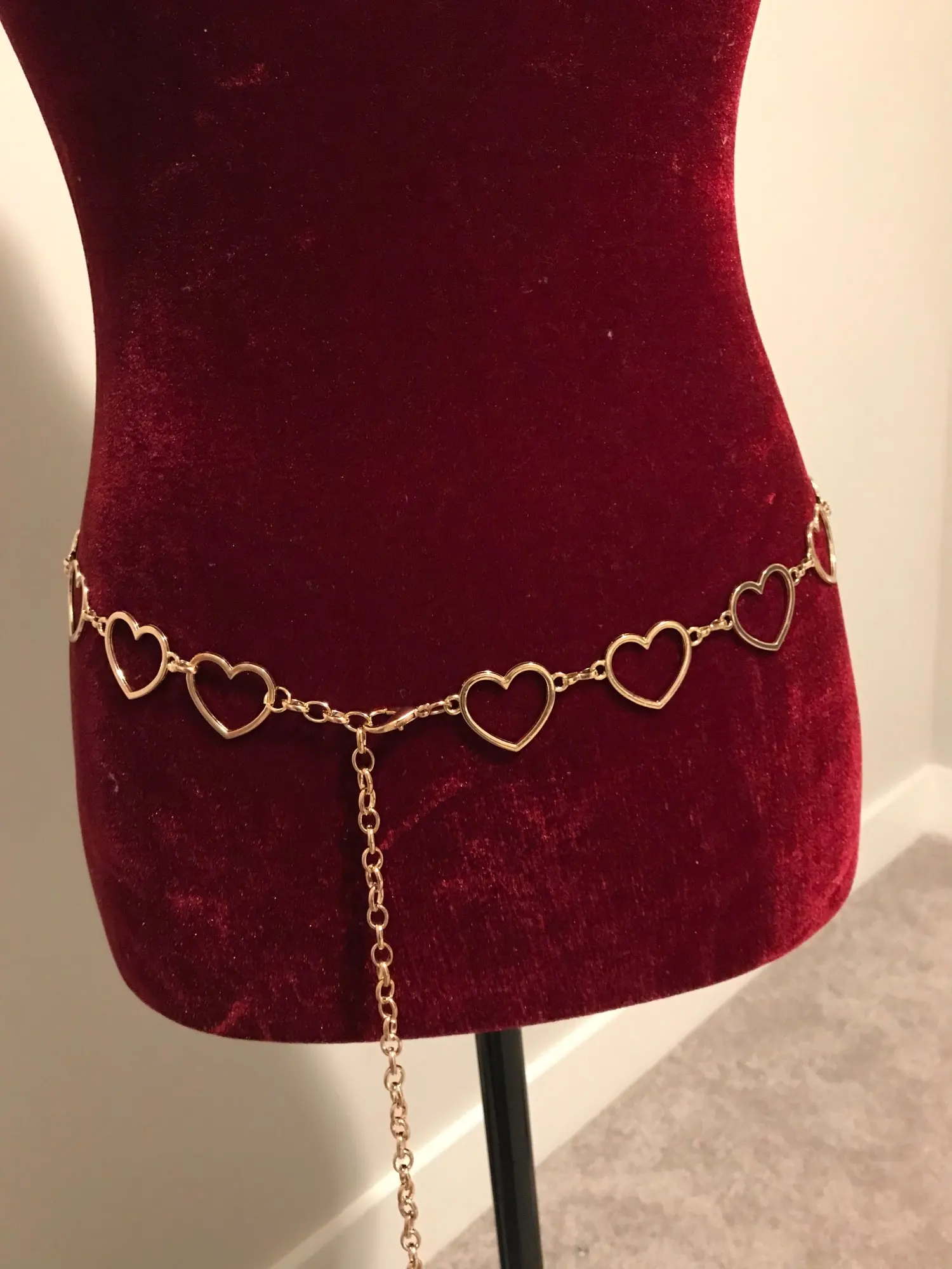 Женский пояс в стиле хип-хоп, Классический ажурный пояс с цепочкой и сердечками, 105 см, 2020