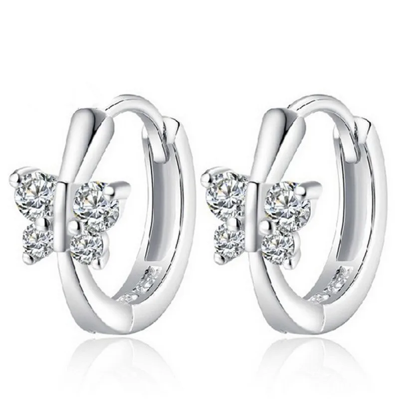 Серьги-бабочки для девочек, из серебра 925 пробы, с цирконием, мале...