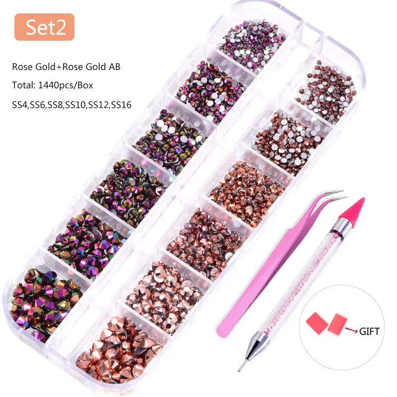 Набор для маникюра 1440 шт.кор., стразы с кристаллами, не требующие горячей фиксации, с набором карандашей, 6 размеров, стразы без горячей фиксации, F0234
