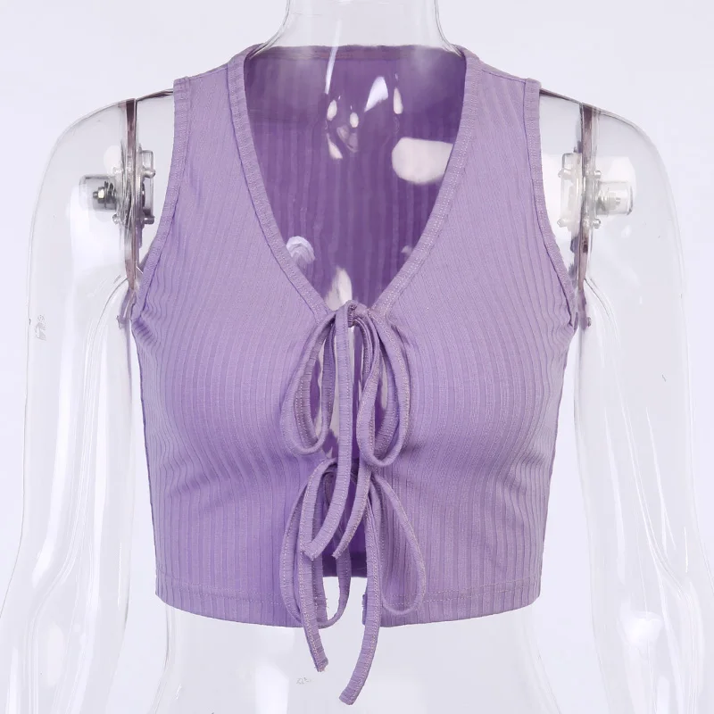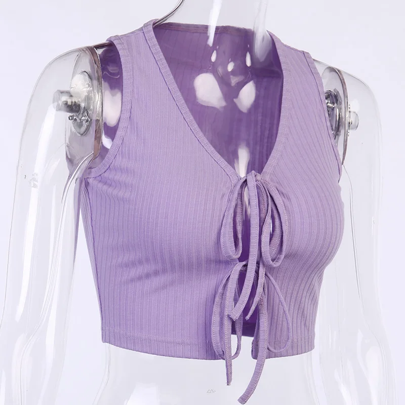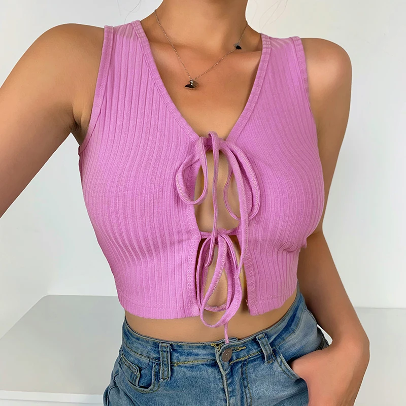 Женский топ на шнуровке InstaHot, летний облегающий Топ без рукавов, с v-образным вырезом