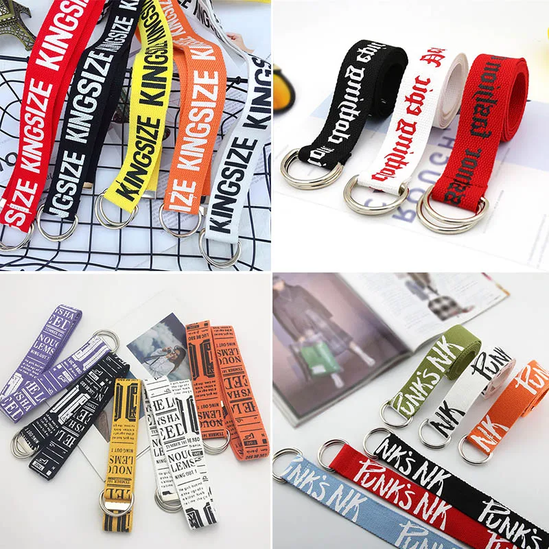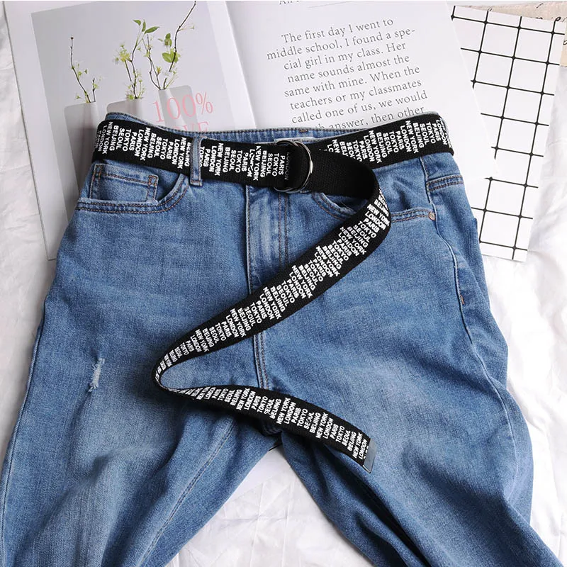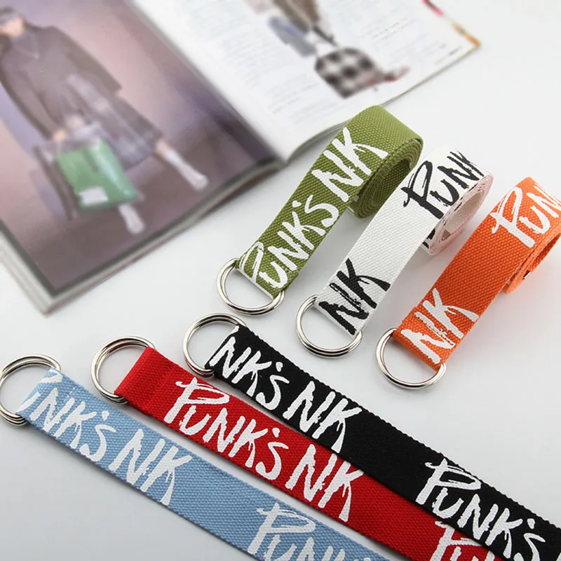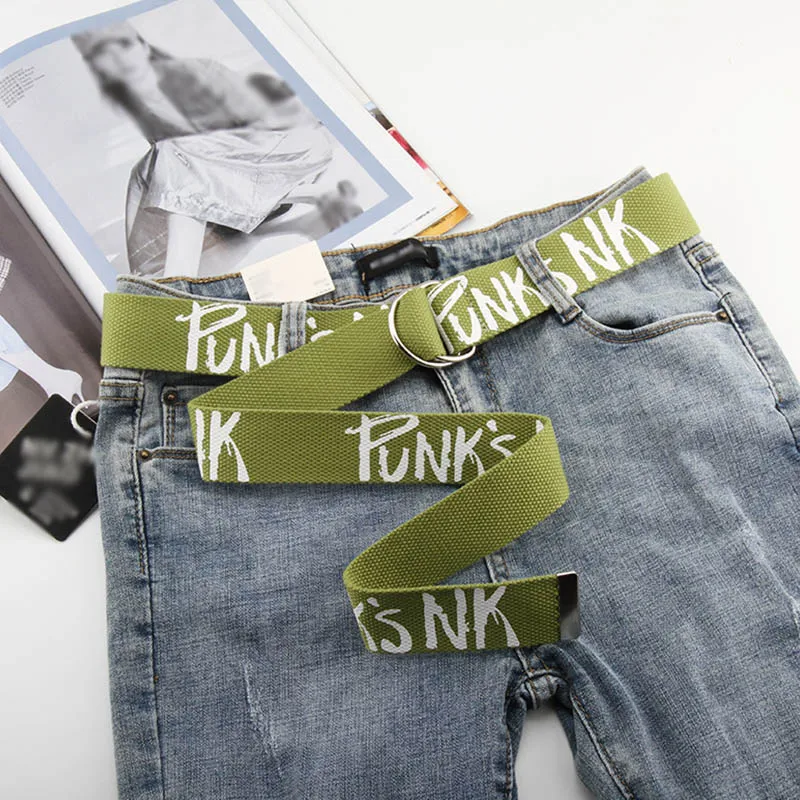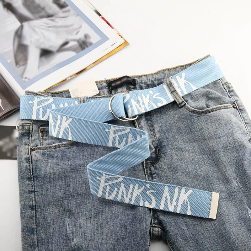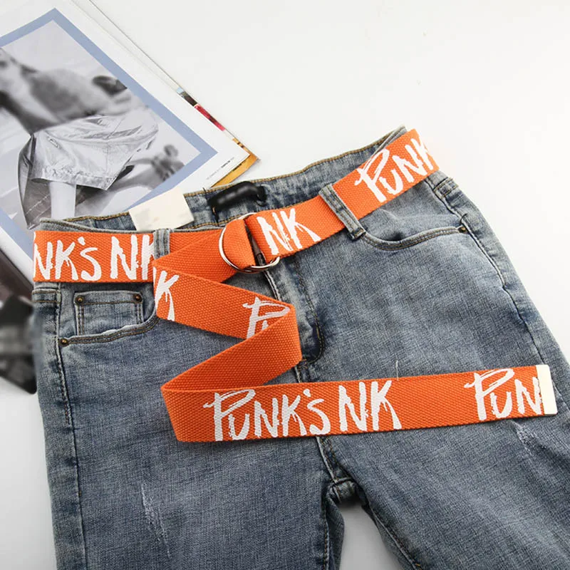 Холщовый ремень в стиле панк, женский, мужской, в стиле Харадзюку, с буквами принт пламя, длинный ремень с D-образной пряжкой, черный, белый, женский ремень для джинсов