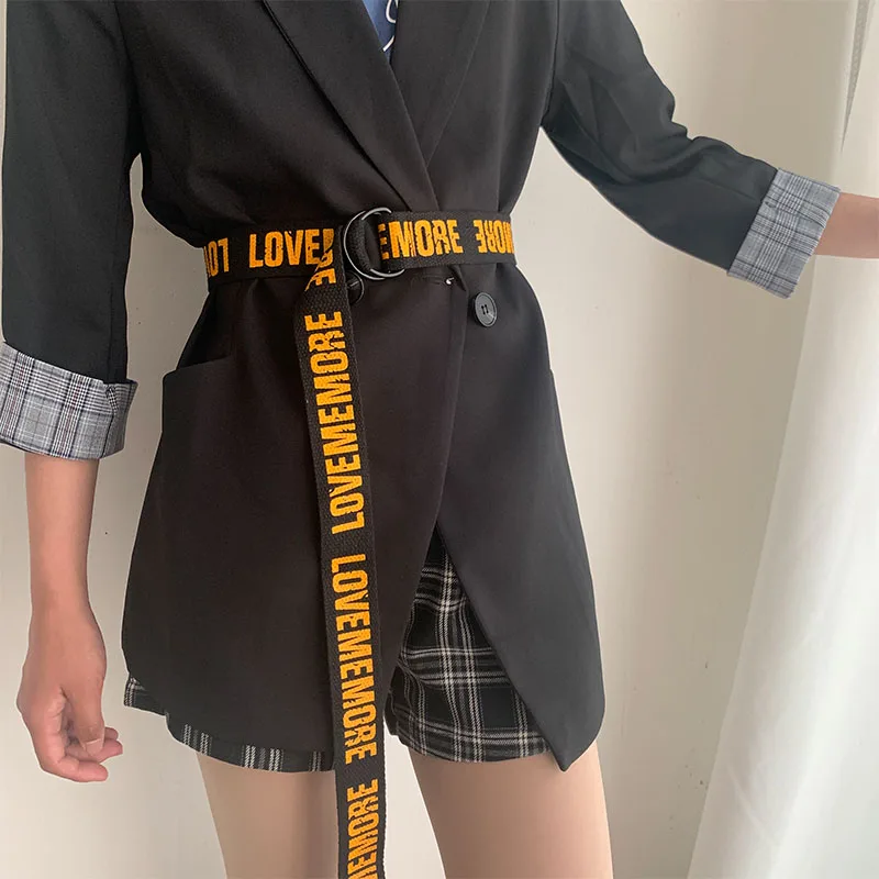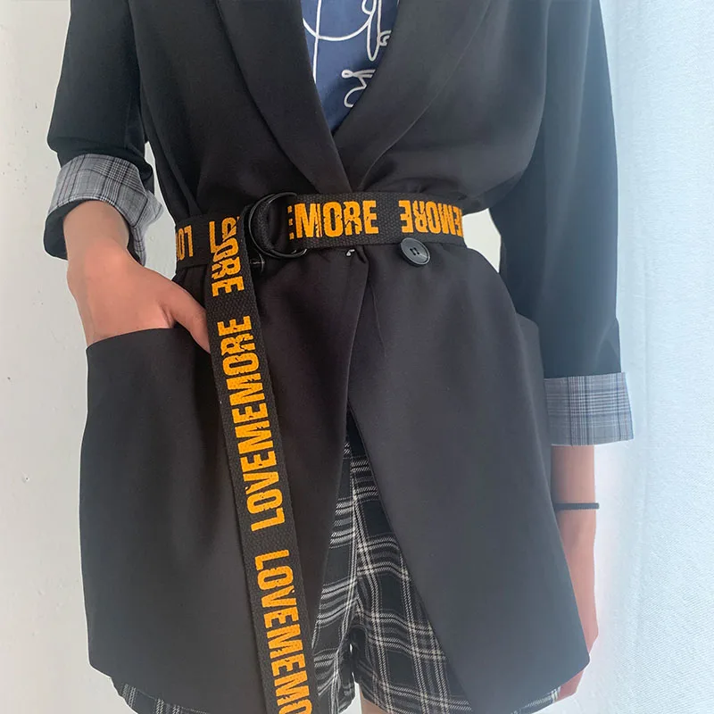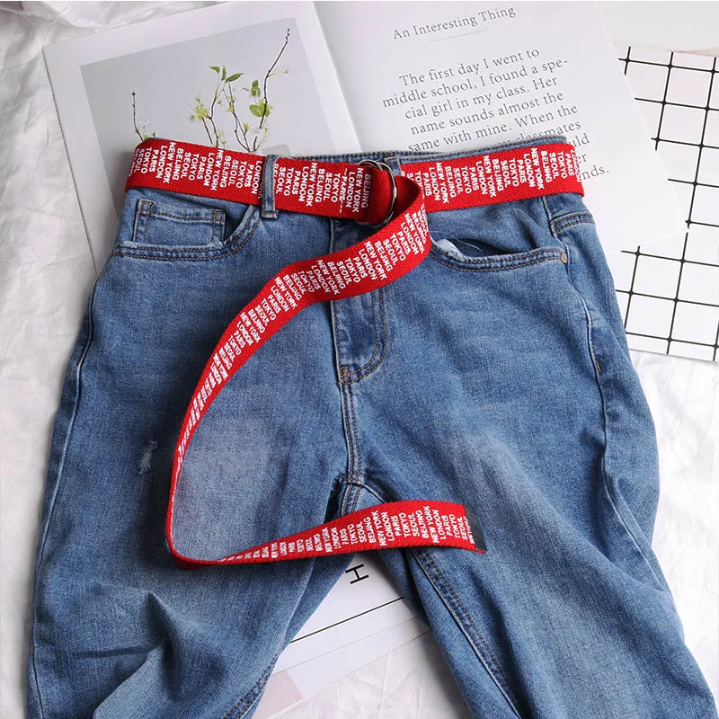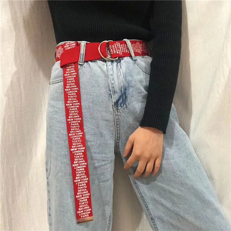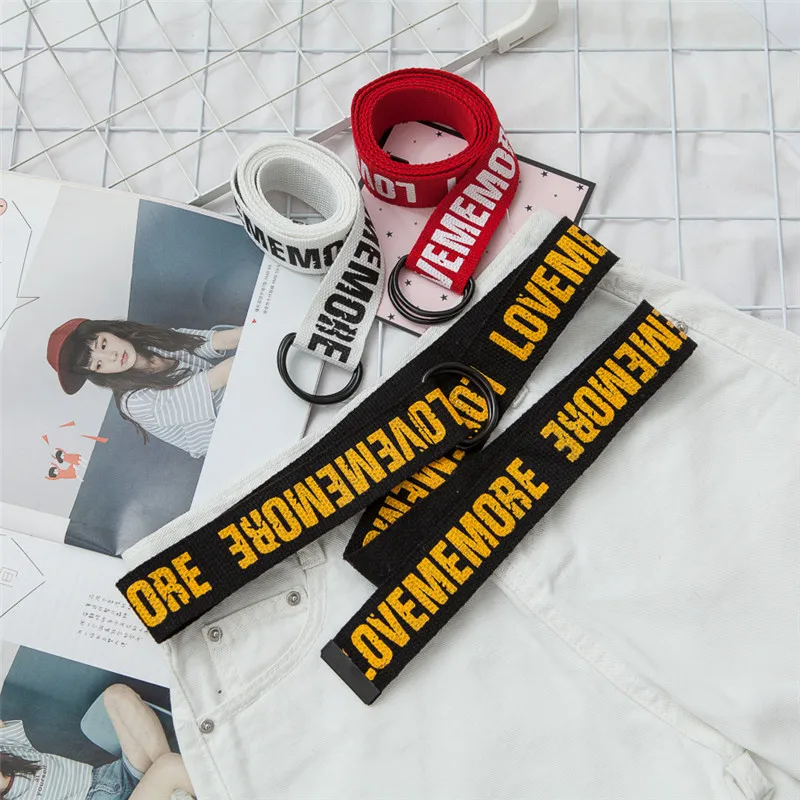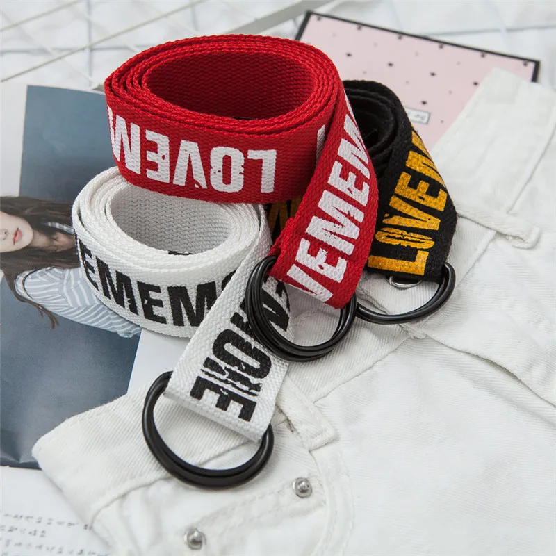 Холщовый ремень в стиле панк, женский, мужской, в стиле Харадзюку, с буквами принт пламя, длинный ремень с D-образной пряжкой, черный, белый, женский ремень для джинсов
