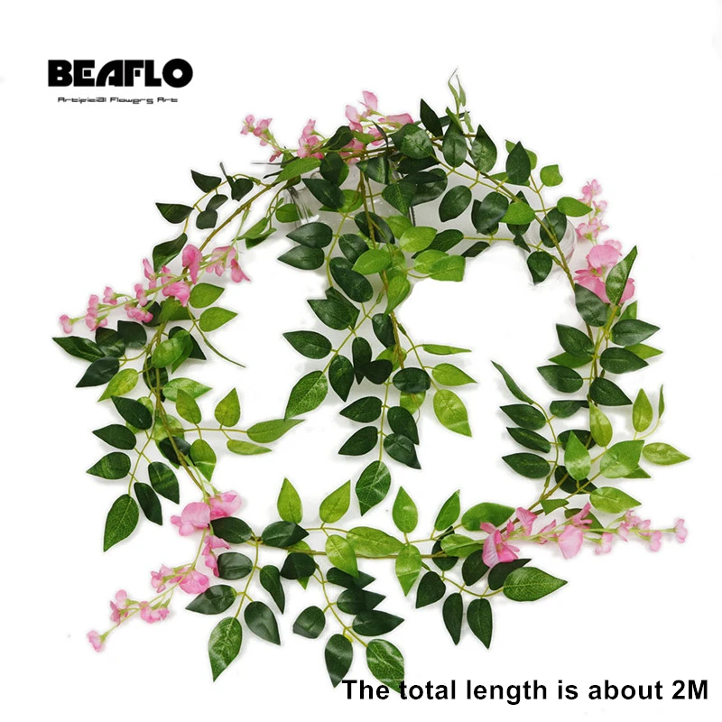 2 м Искусственные цветы Виноградная лоза цветы глицинии искусственные растения искусственная зелень ротанг Свадебное Украшение Цветок Подвесной Настенный декор