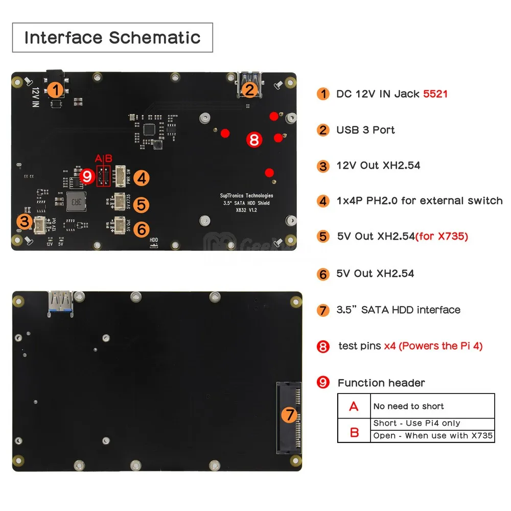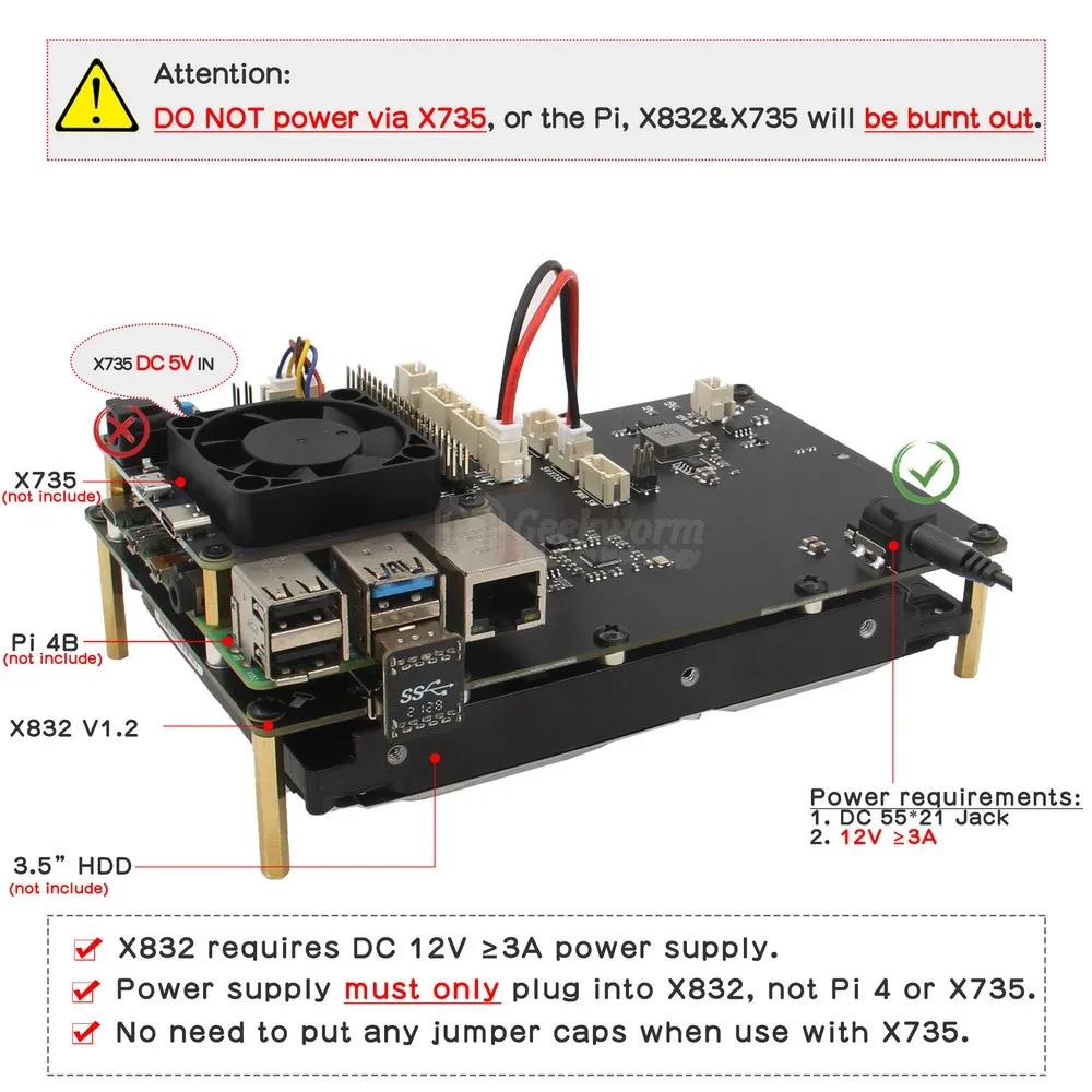 Raspberry Pi X832 V1.2 3,5 "SATA Плата расширения для хранения жесткого диска с USB 3,1 Jumper только для Raspberry Pi 4 Model B