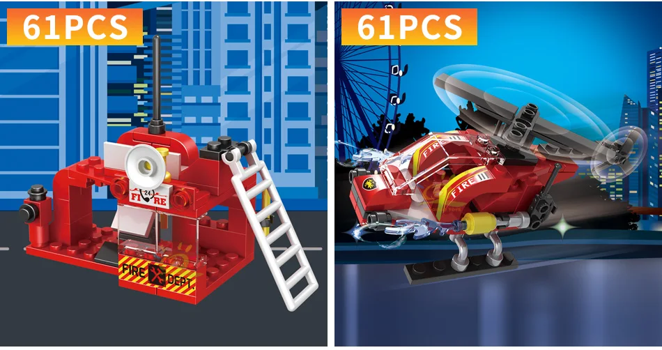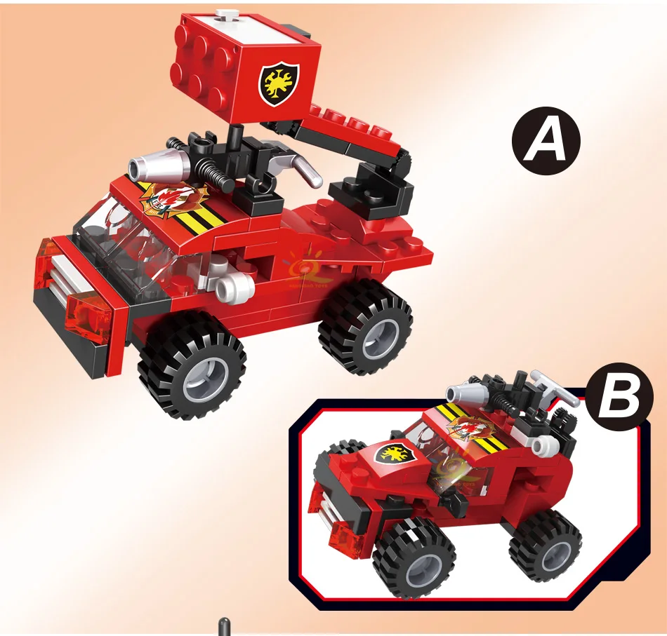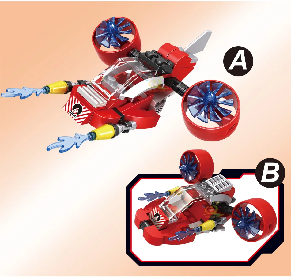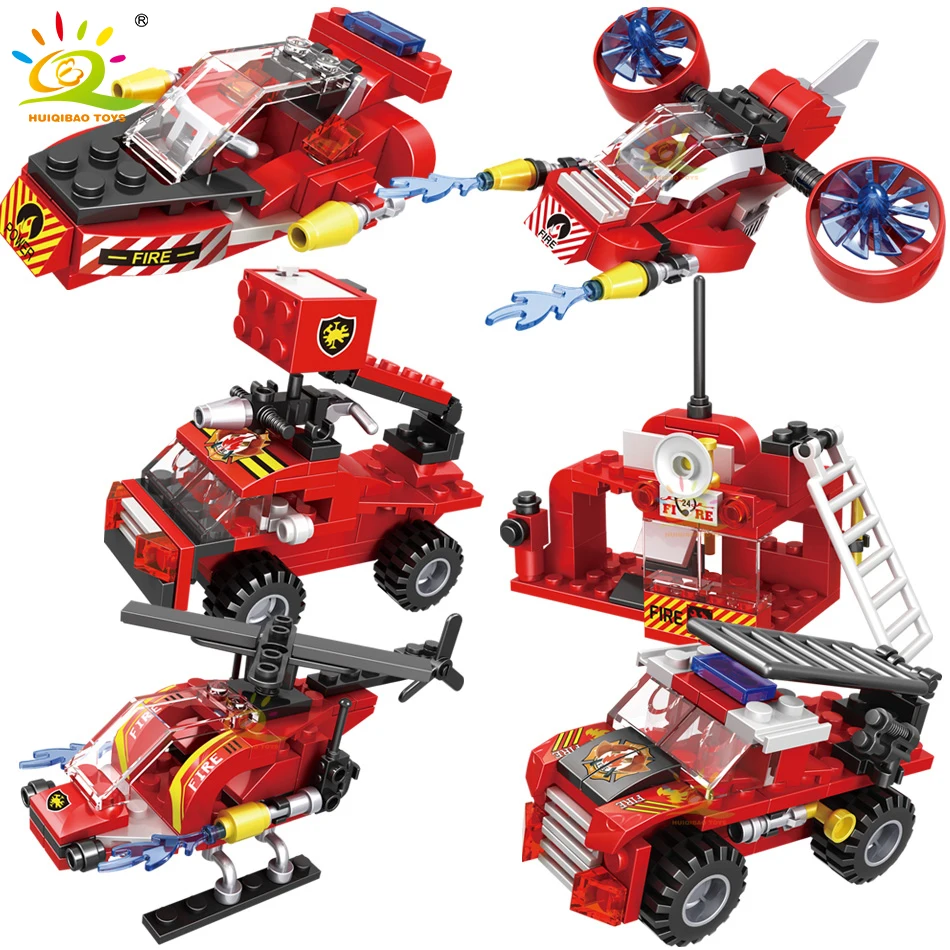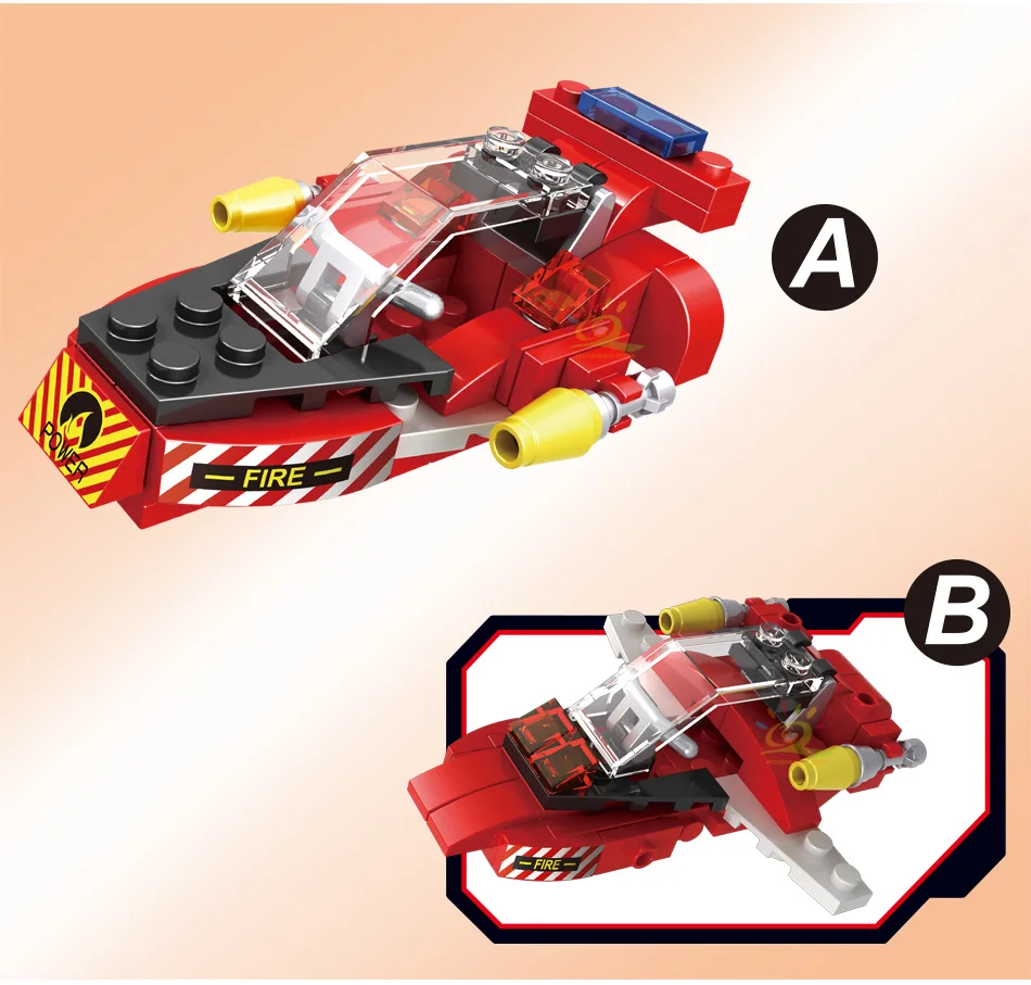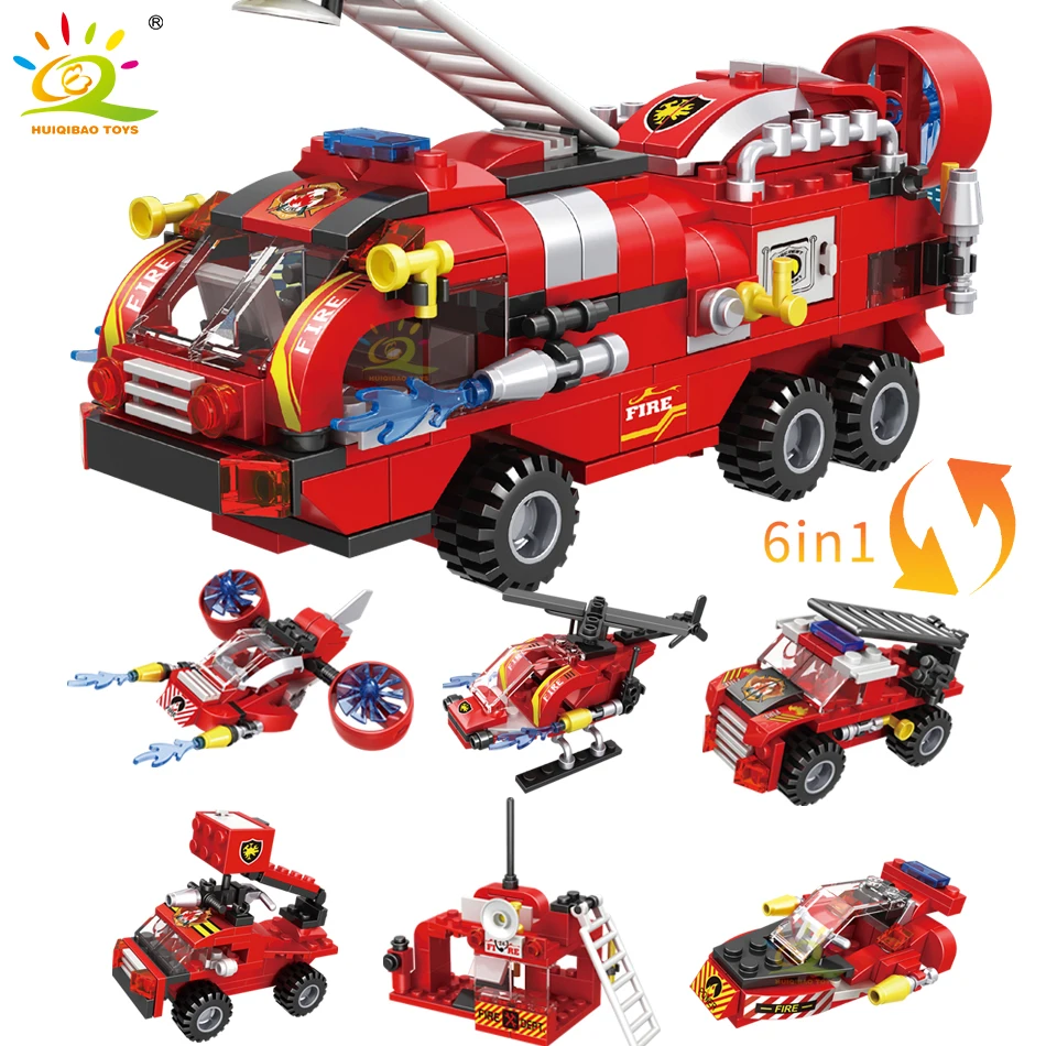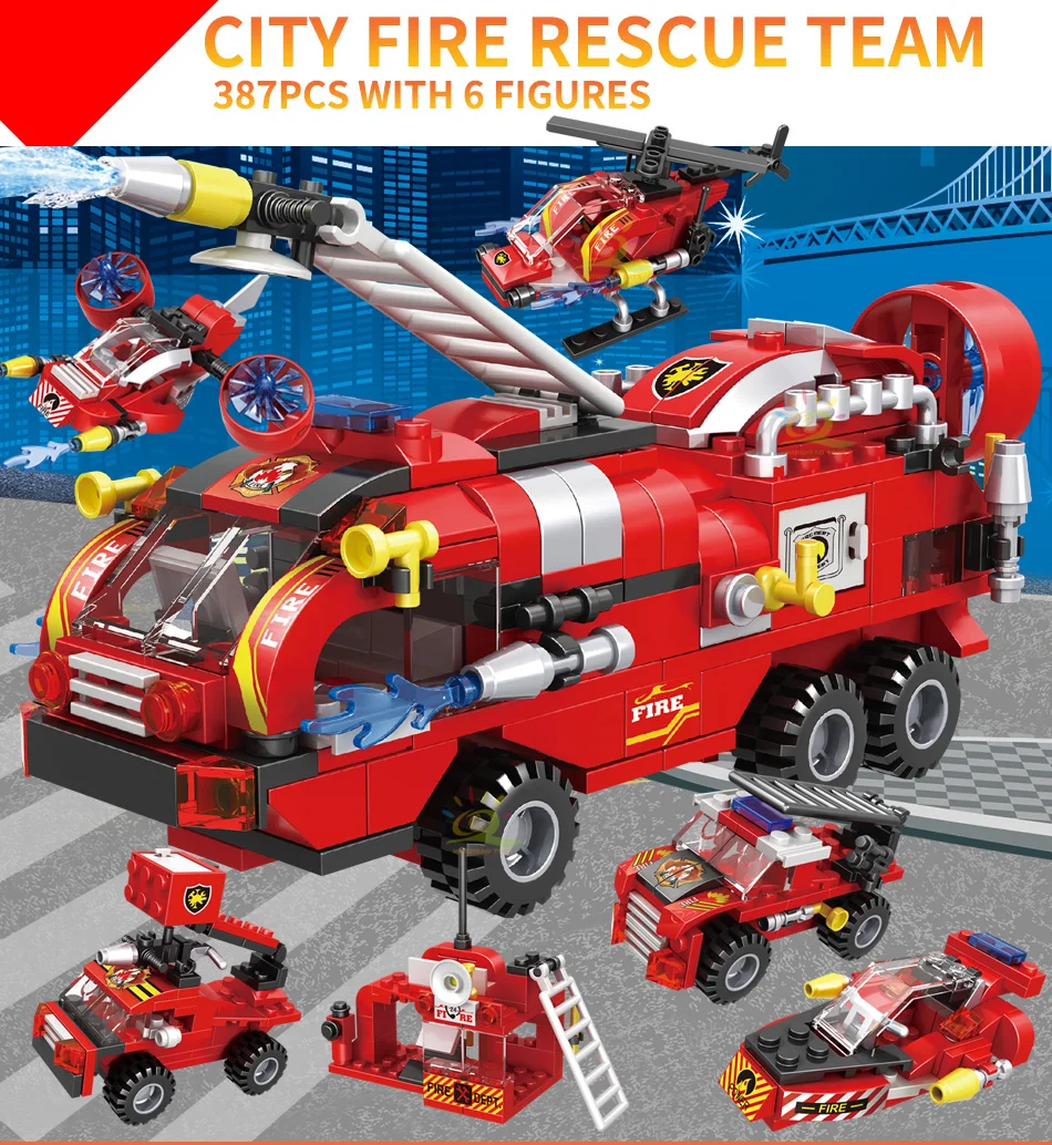 Детский конструктор пожарные машины 6 в 1, 387 блоков
