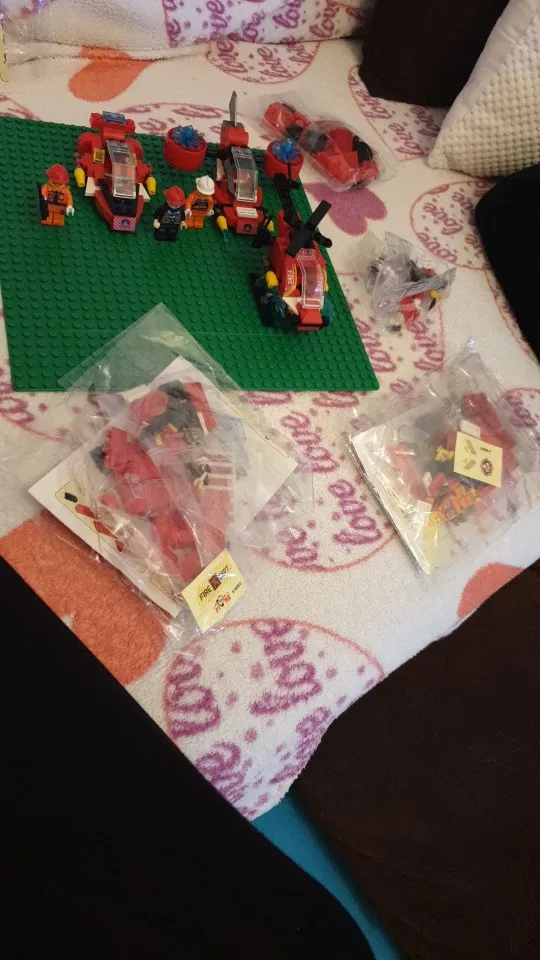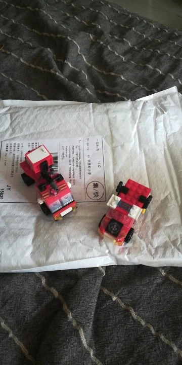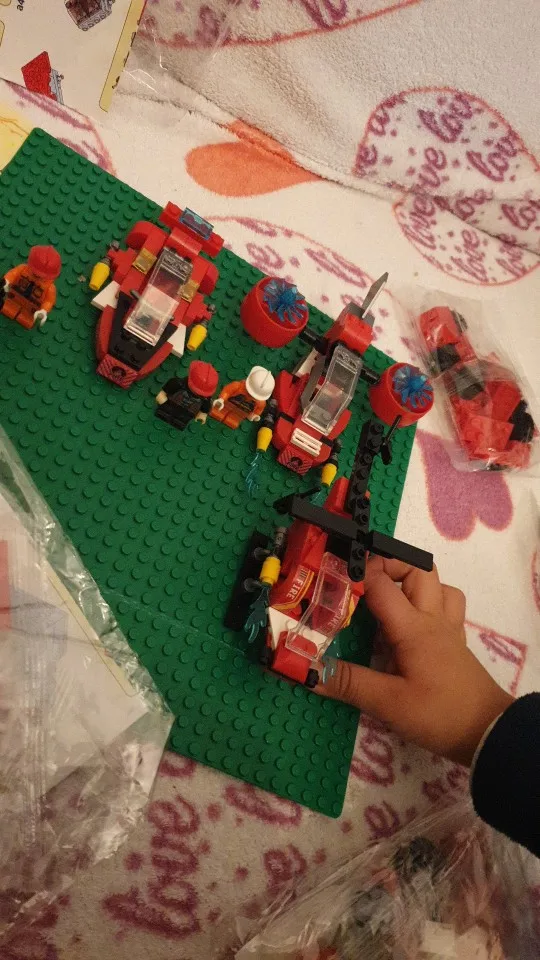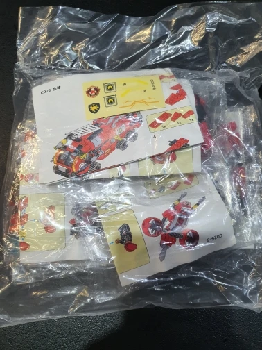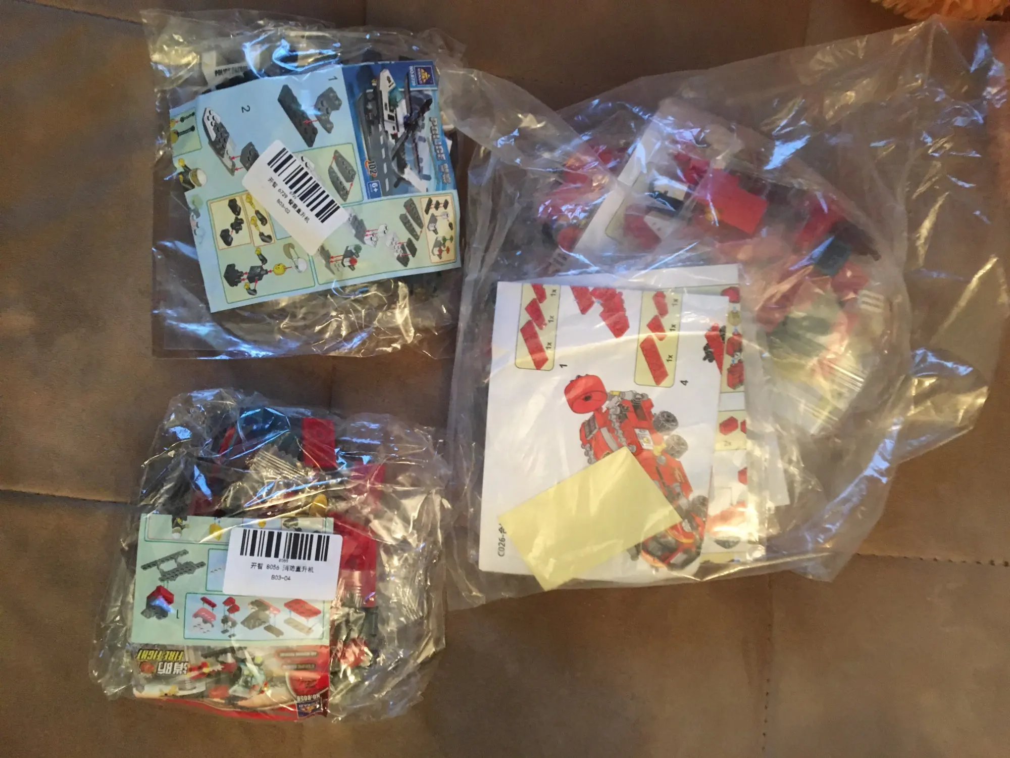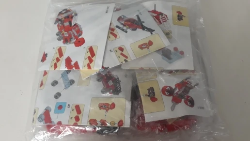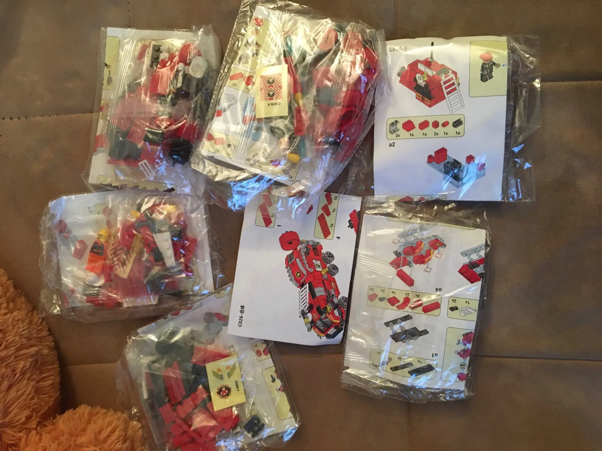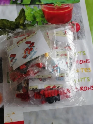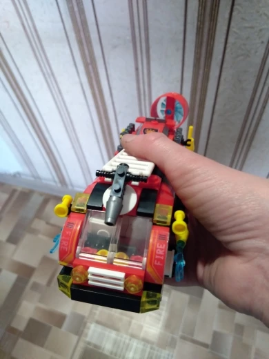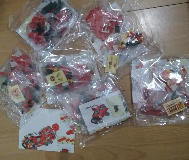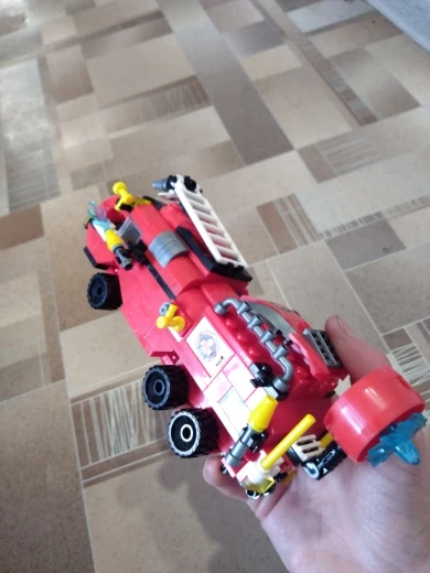 За 793 рубля отличный конструктор, пришёл в пакетах. Можно собрать 6 разных модификаций. Сразу собрали пожарную машину с сыном. Качество хорошее, вполне! Не пахнет. Из минусов - не удачная схема сборки машины, детали не зафиксированы и при игре быстро отваливаются.