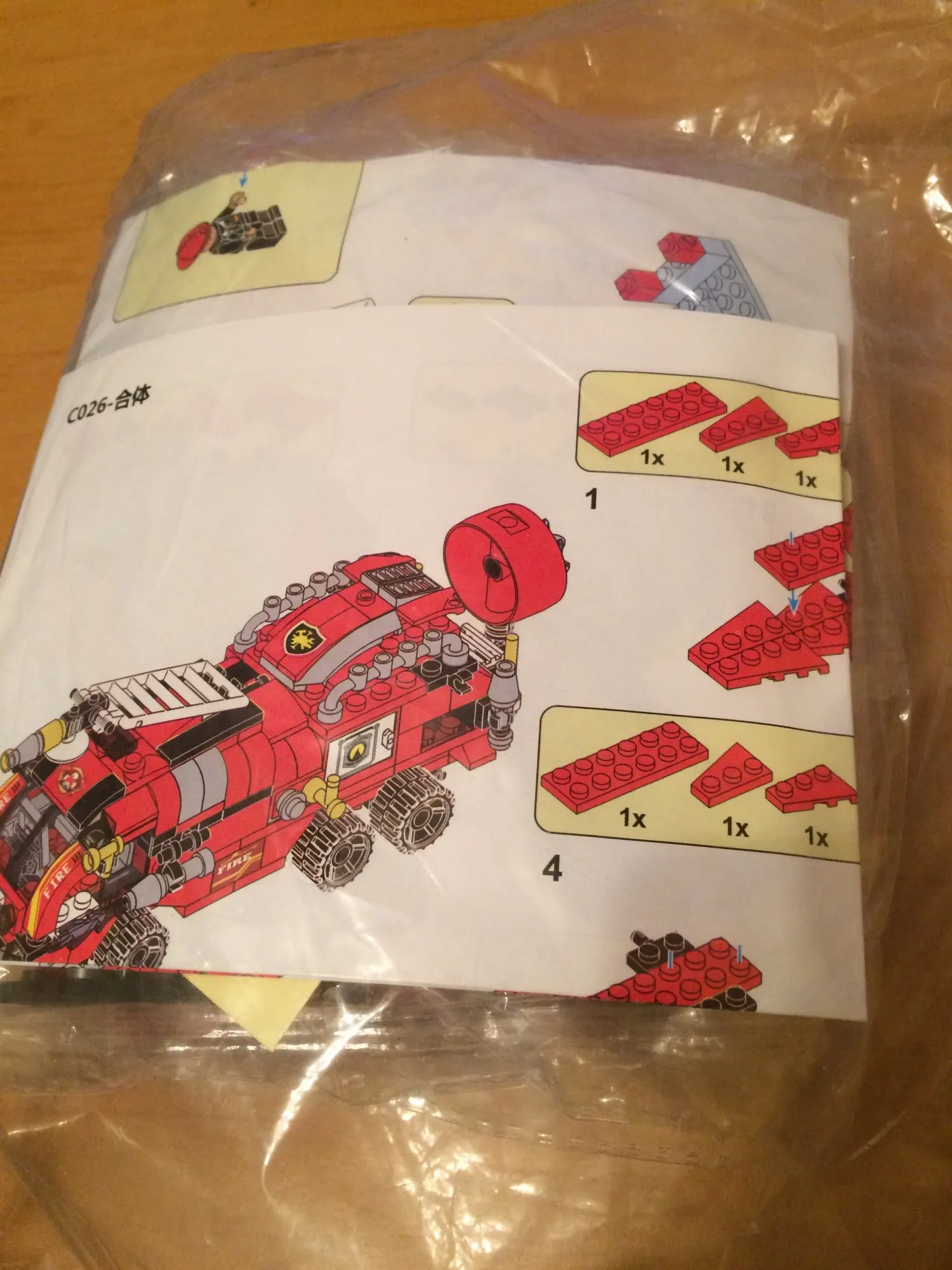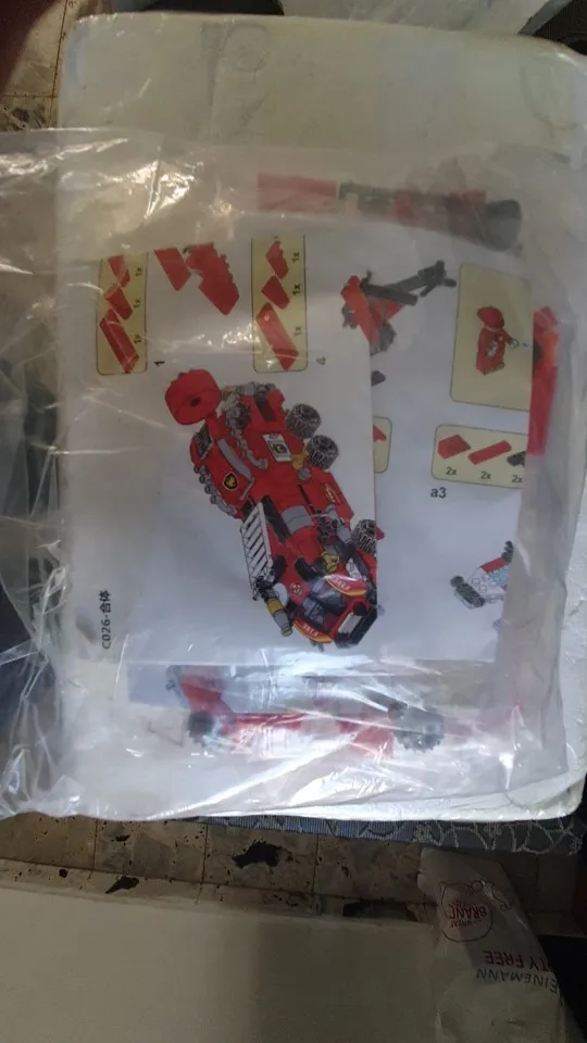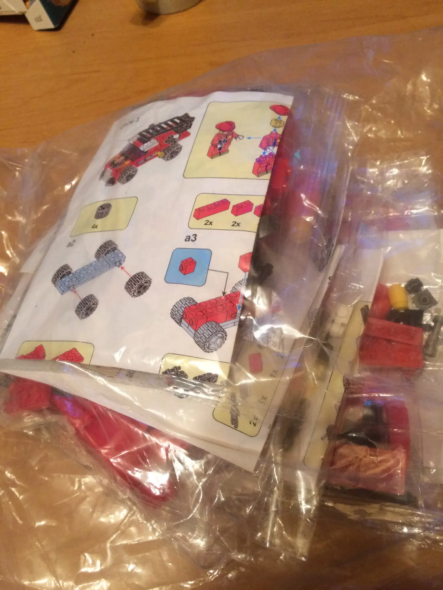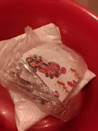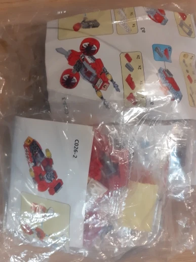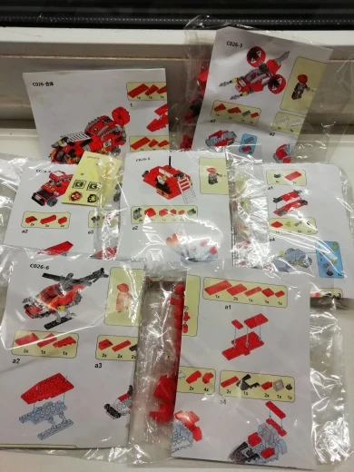Пришло в такой упаковке, внутри прозрачные пакеты по количеству машинок, в каждом схема и одна большая схема для сбора большой пожарной машины. Ребёнок в восторге, увлекло на несколько дней. Кисти рук у человечка не вставились но цена соответствует качеству, можно и приклеить