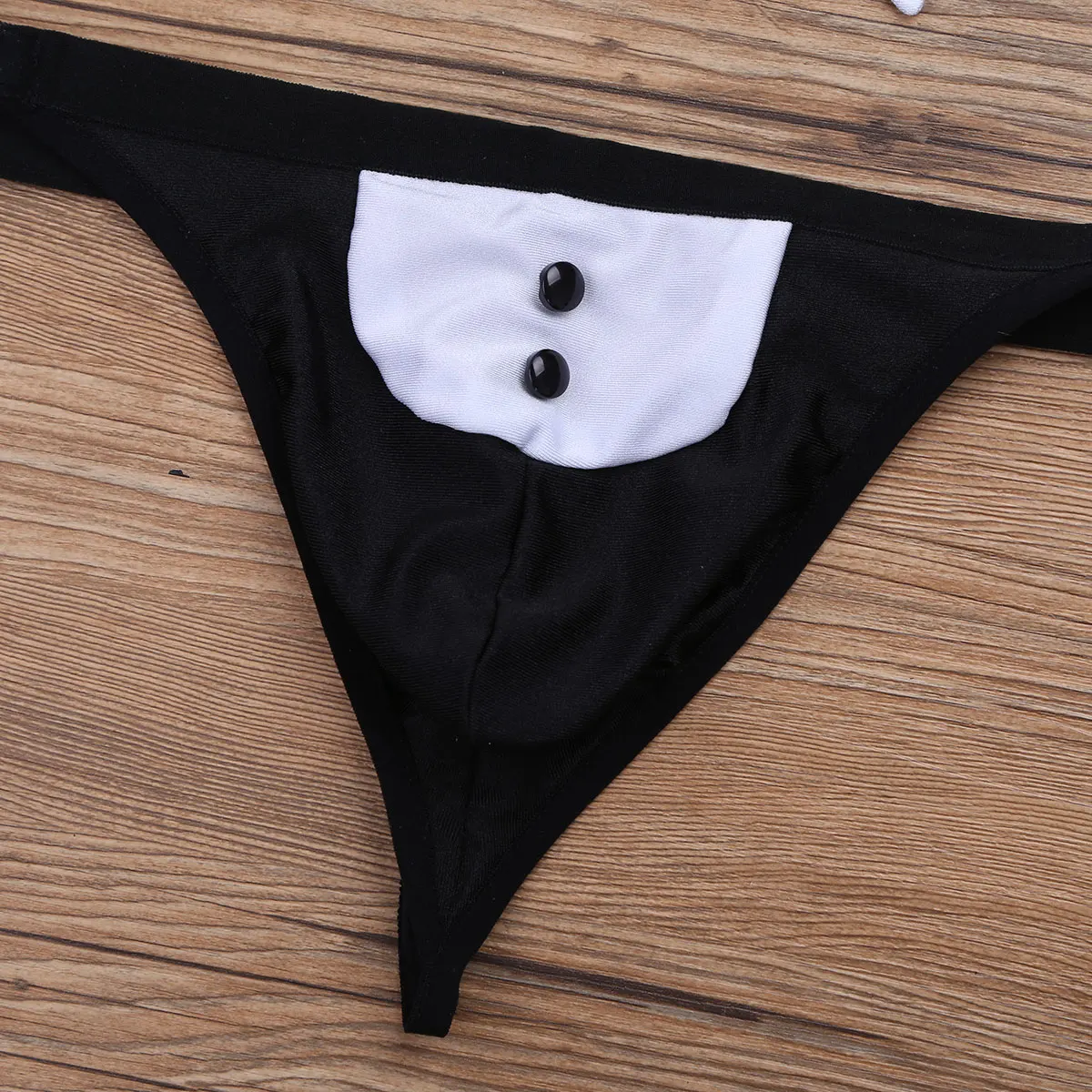 Мужское эротическое нижнее белье для официанта 3 шт., костюм для косплея, стринги с открытой спиной, стринги, нижнее белье с галстуком-бабочкой, воротником и браслетом