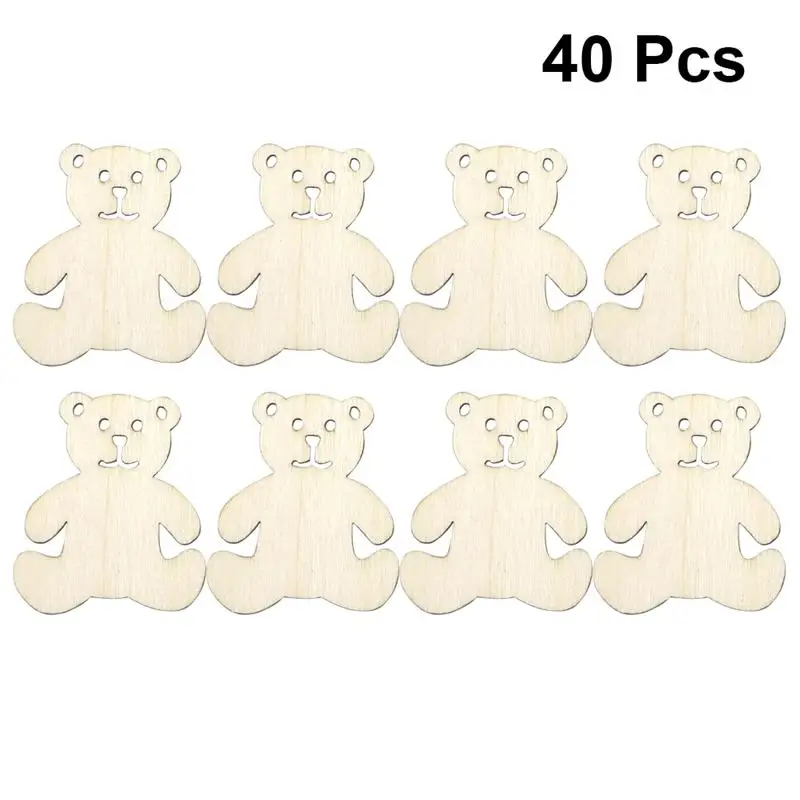 40 шт. декоративные деревянные прочные необработанные креативные чипы в форме медведя, украшение для семьи, друзей, коллег