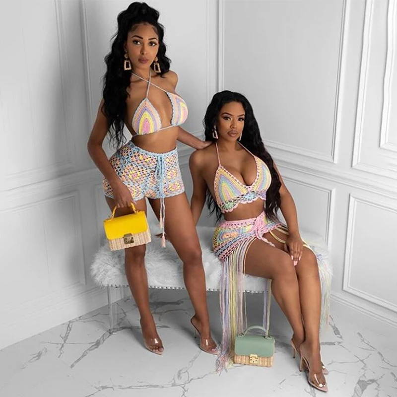 Женский комплект из 2 предметов с юбкой и вязаной крючком