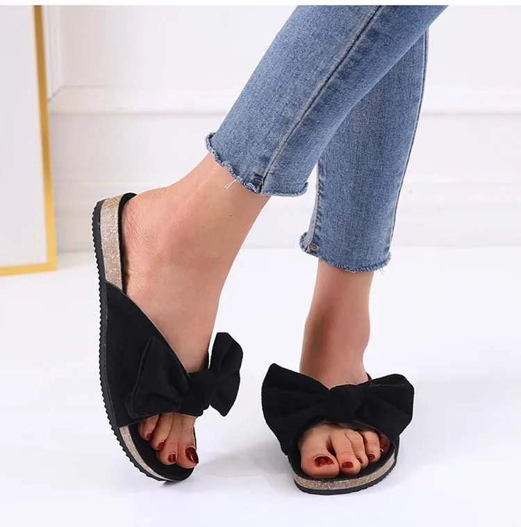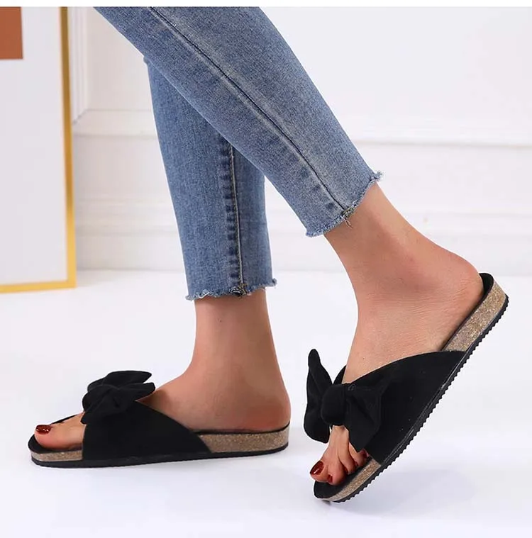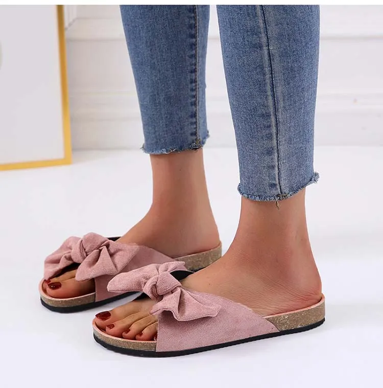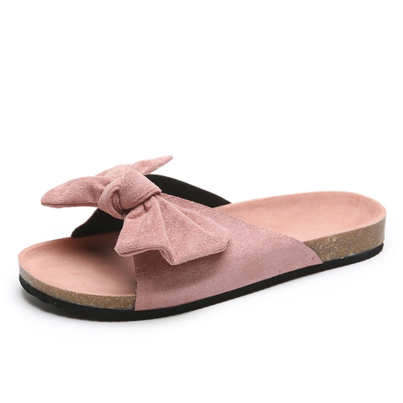 Сандалии женские на плоской подошве, повседневные шлепанцы, сандалии, милые с бантом, лето 2020