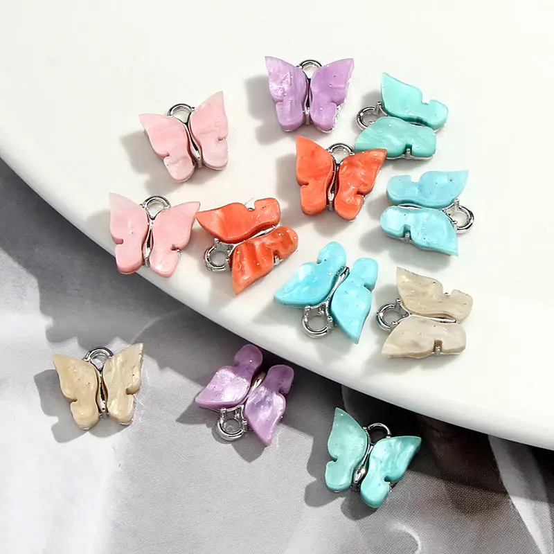 Flatfoosie 10 шт.компл. 16 видов цветов сверкающие бабочки DIY ювелирные изделия аксессуары акриловые для изготовления сережек ожерелья подвески материал