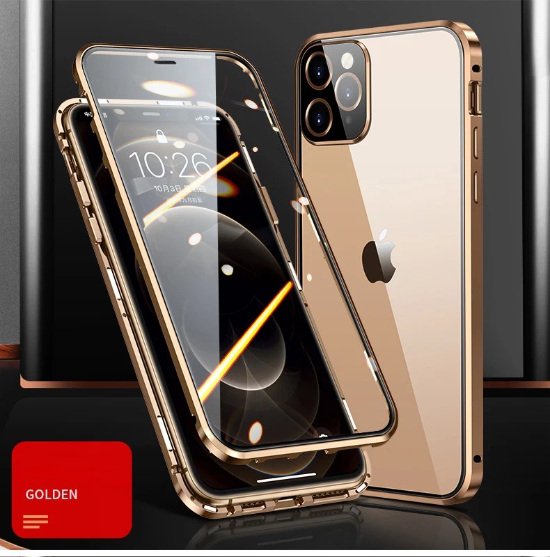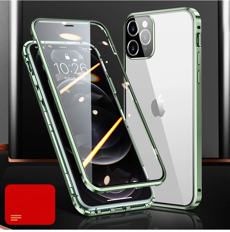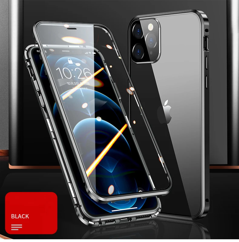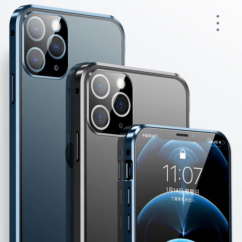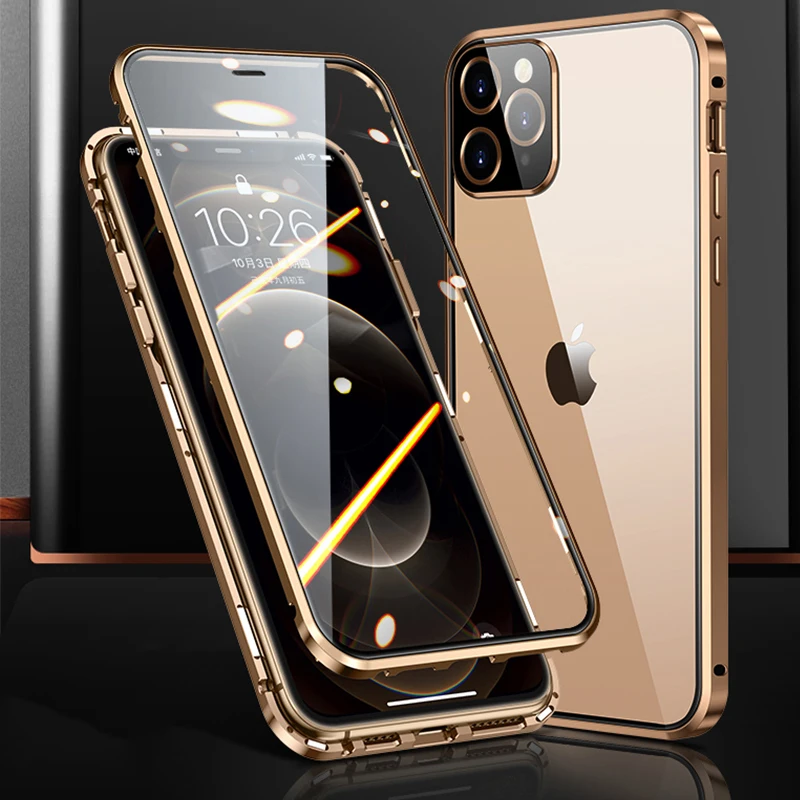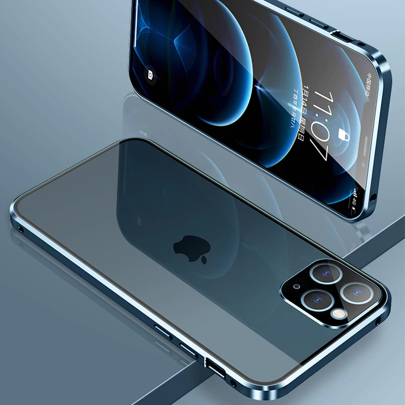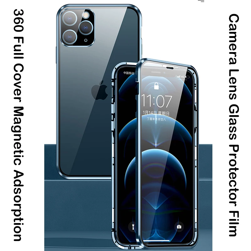 Магнитный чехол с полным покрытием 360 градусов для iPhone 12 Pro MAX 13 Mini 11Pro, роскошный металлический чехол-бампер, стеклянная Защитная пленка для объектива камеры